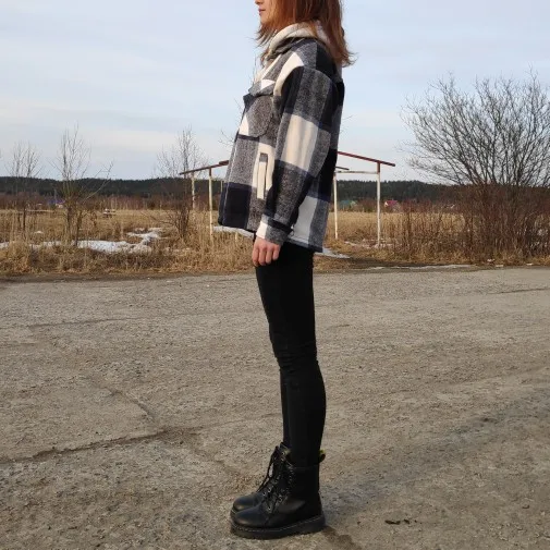 Very long shipping goods. It's been a week and a half, and the store never sent his shirt. I wrote a message and only after a day I taught the answer from the category-OK, just send... Well, that's it. .. Long hesitant what size to take, S or Xs... I wear 40-42 height 163 (82-63-84) eventually took Xs. She sat well, sleeves clearly, shoulders in place, there is an oversize effect, along the length of the ass covered. On the head, the body is pricked, maybe after washing there will be norms, but in general it's outerwear, the type of jeans is warm. The quality is normal, the seams are even, there were a couple of threads. But came in spots, opened a dispute for a partial refund. The parcel was fully served. Color matches
