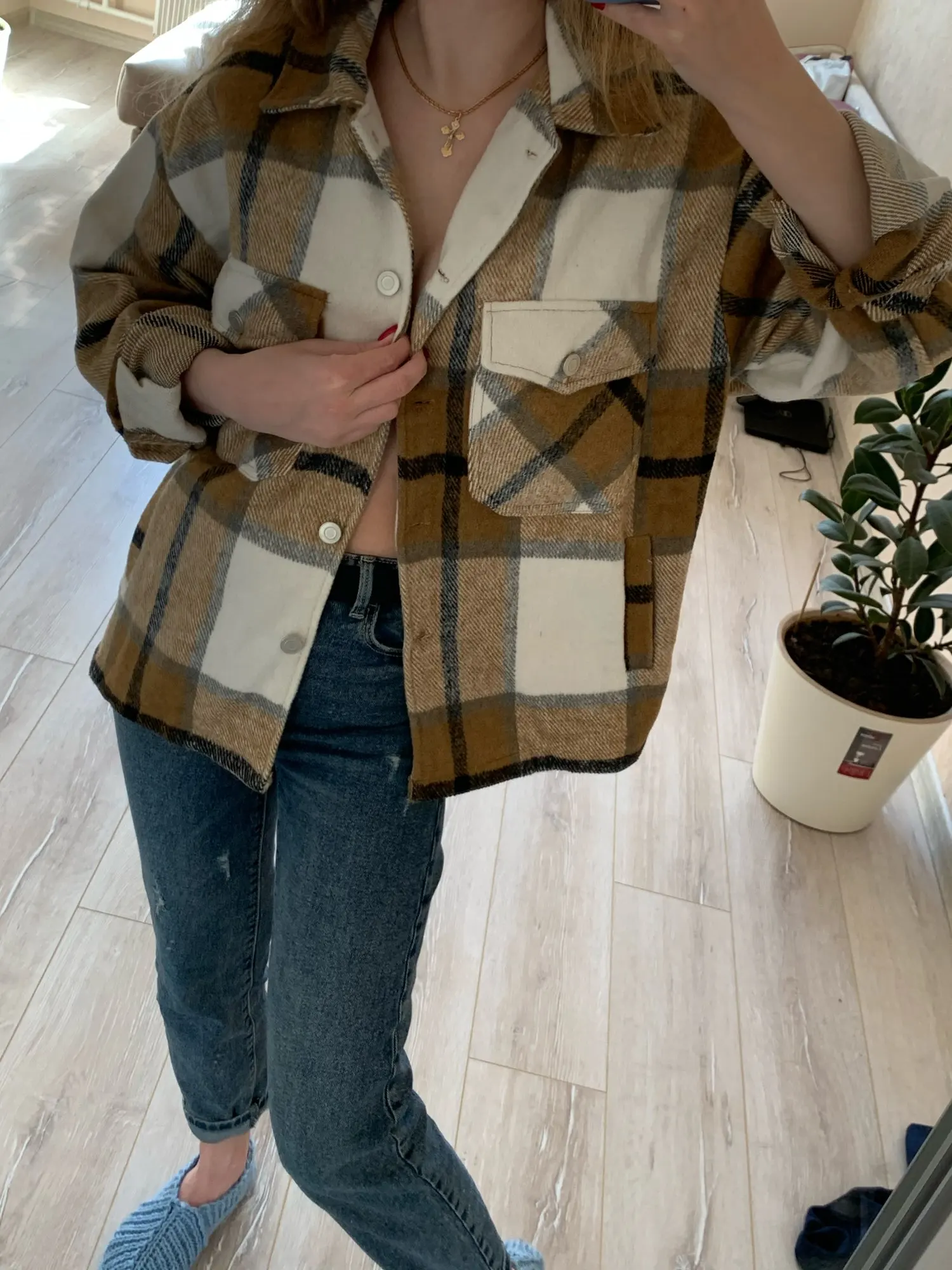 Я знала, что рубашка хорошая, но она выше всяких похвал! Это именно толстая рубашка, не куртка, не пальто, как некоторые пишут. Может заменить джинсовку, кардиган. Очень уютная. Подошла на наш 44, ОГ87, ОТ 73, ОБ 93, рост 164, вес 57кг. Качество пошива хорошее, приехала быстро.