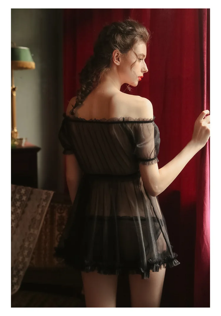 FREE SHIPPING Pajamas Women Transparent Tops Gauze Attractive Home Clothes Temptation JKP3585