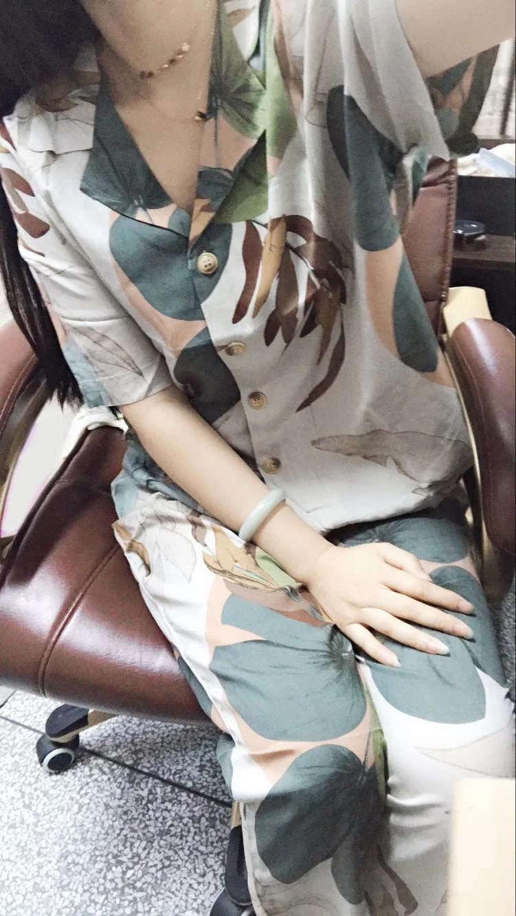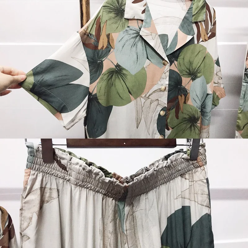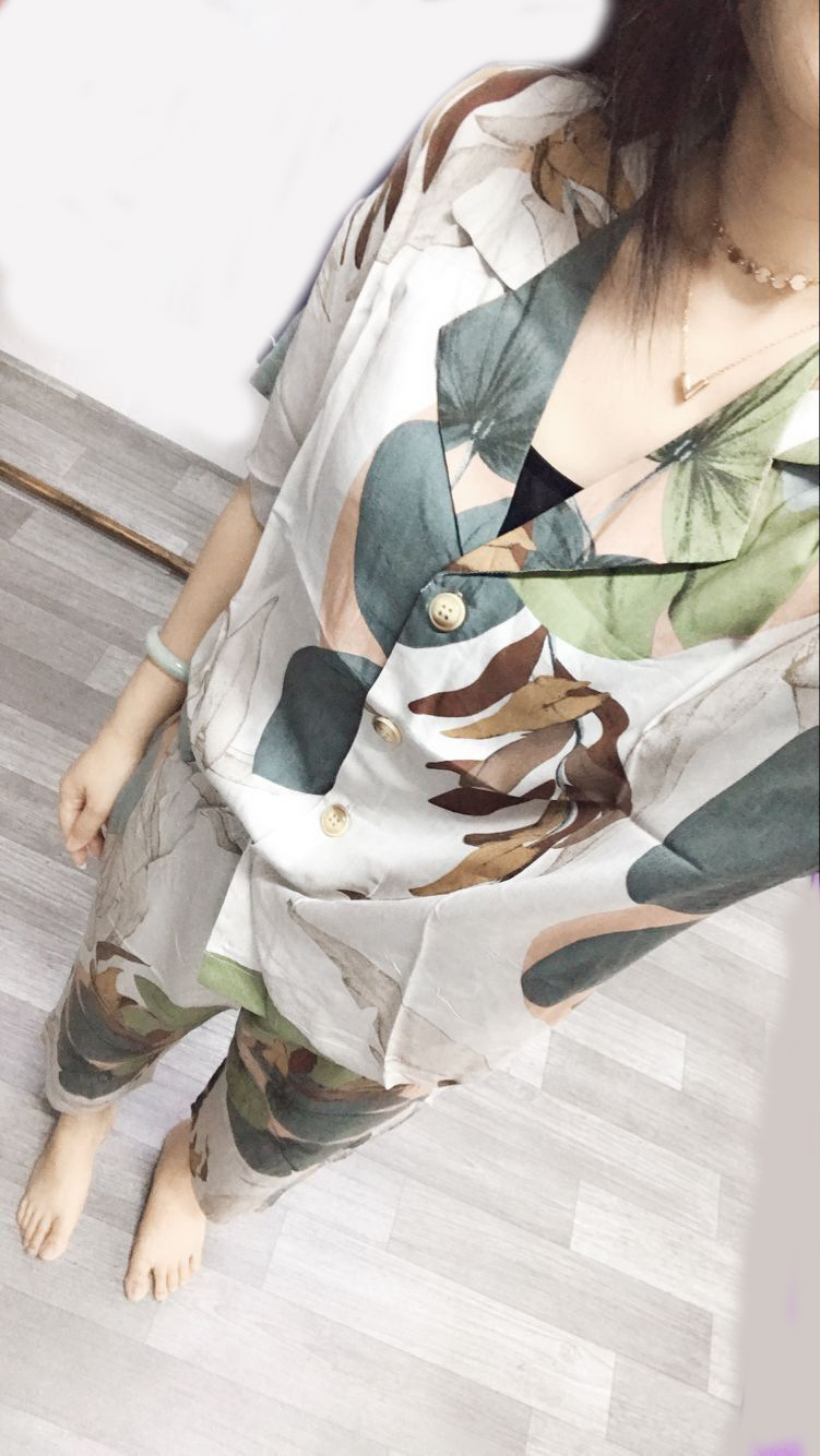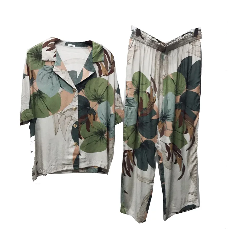FREE SHIPPING Pajamas Women’s Short-sleeved Cropped Trousers Pajamas Set Printing Lapel Casual Large Size Loose Thin Home Clothes JKP2678