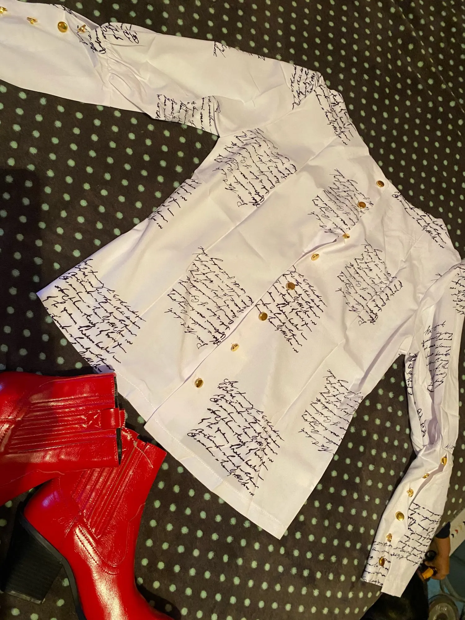 It's so beautiful. I love her quite the fabric is excellent quality is thin, but it's worth it with a Blazer or a black biker and a black skirt or camel