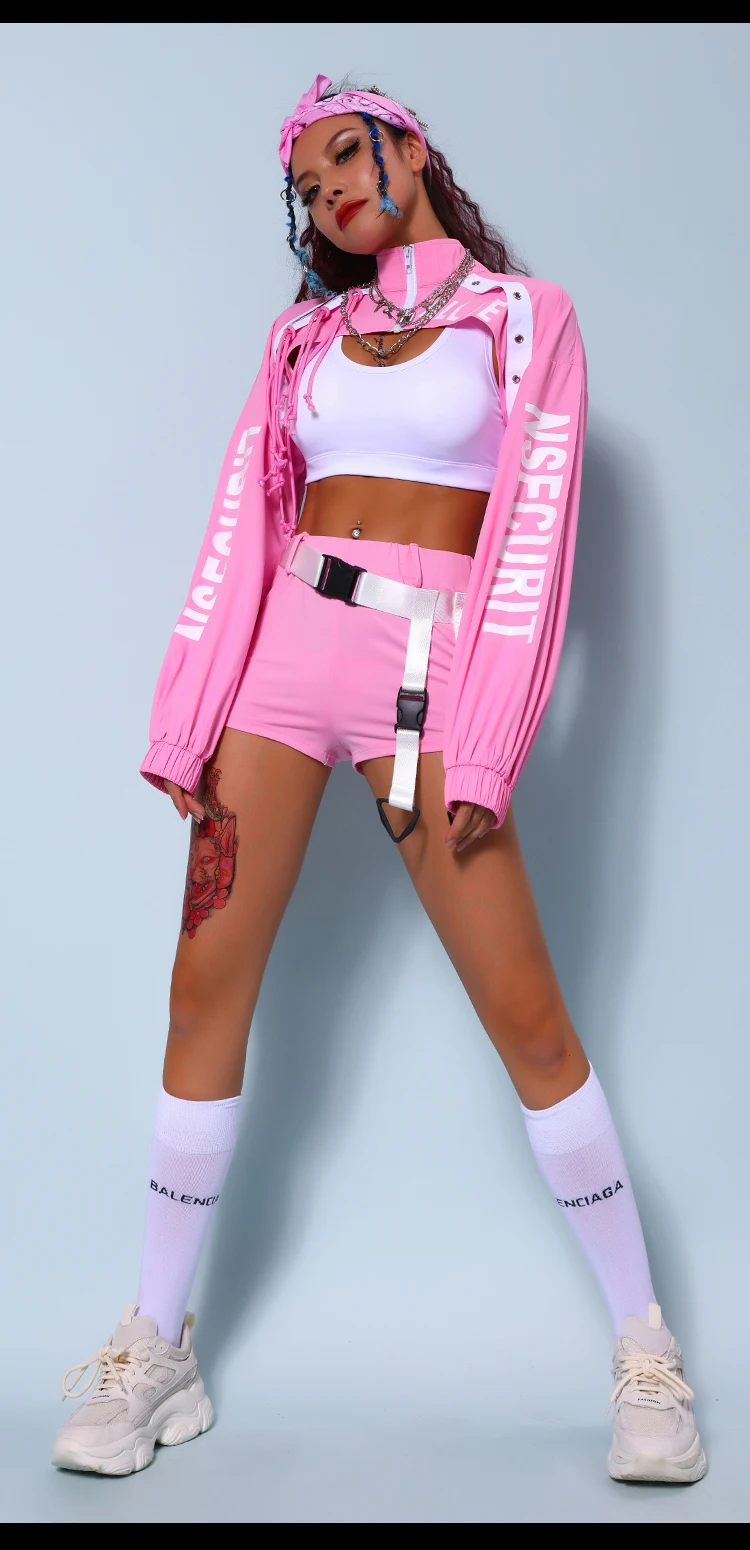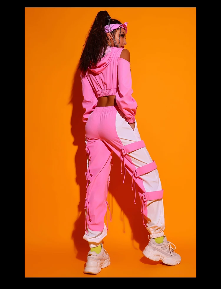 FREE SHIPPING Pink Hip Hop Nightclub Dj Costume Dance Stage Costumes JKP5921