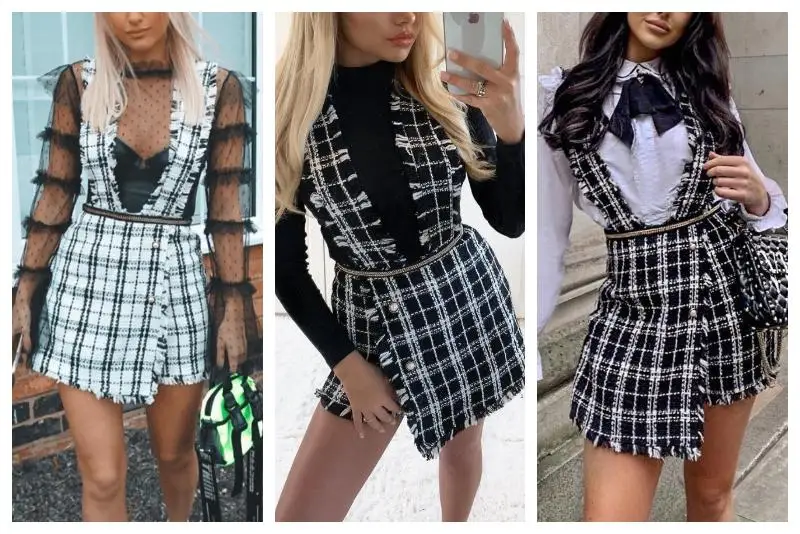FREE SHIPPING Plaid High Waist Tweed Sexy Buttons Skirt JKP3285