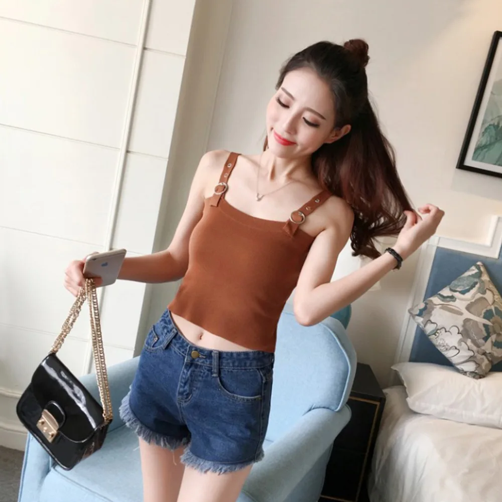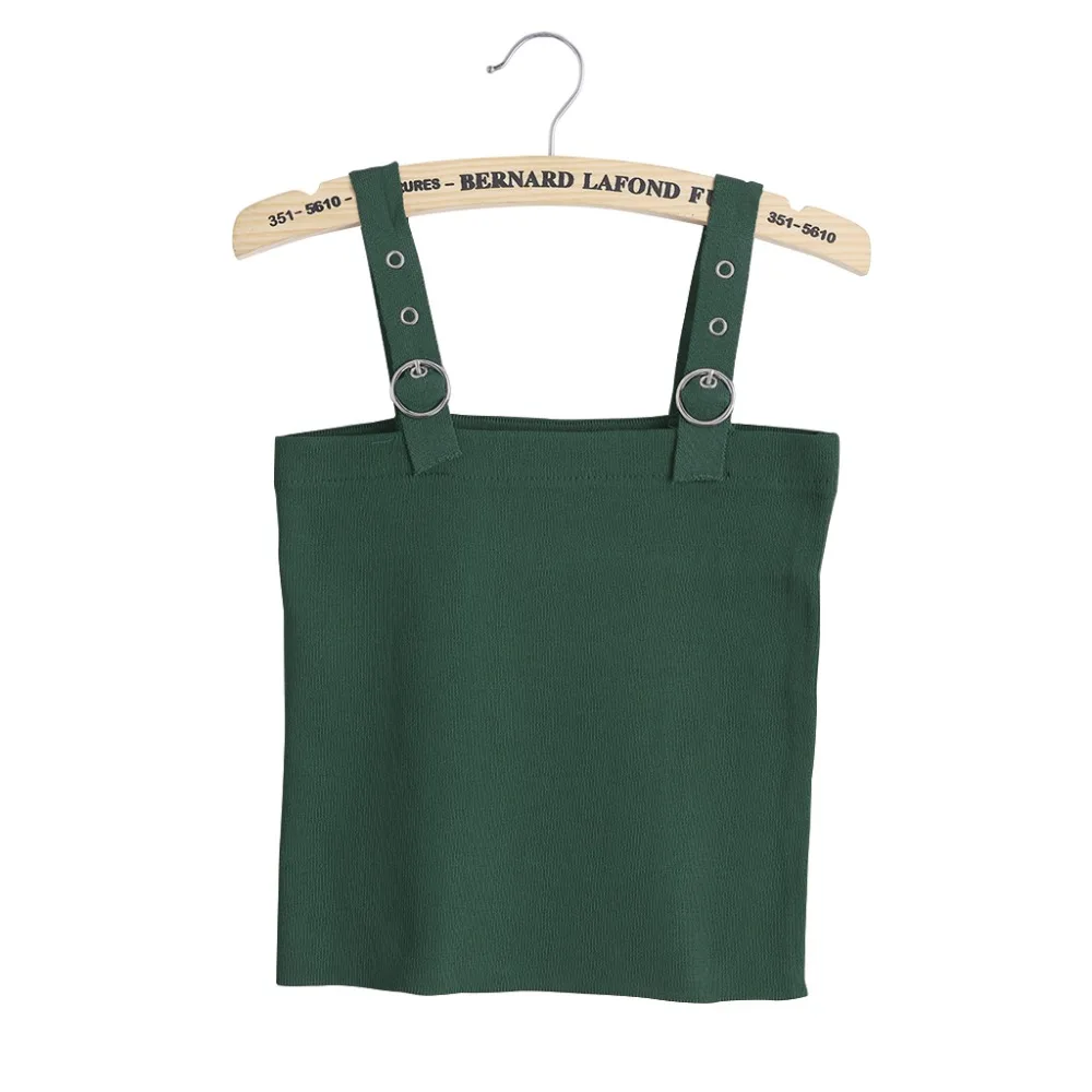 FREE SHIPPING Plain Camisole Knitted Sling Tie-wrap Buckle Vest Slim Tank Tops White/Black/Khaki/Dark Green JKP1418