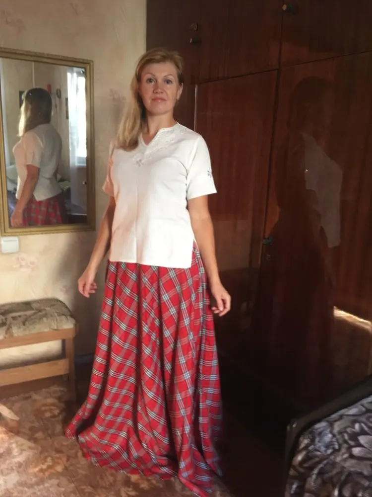 Skirt is great! Sewn with high quality. With the growth of 176 skirt in floor. Thank you!) Size corresponds to the table