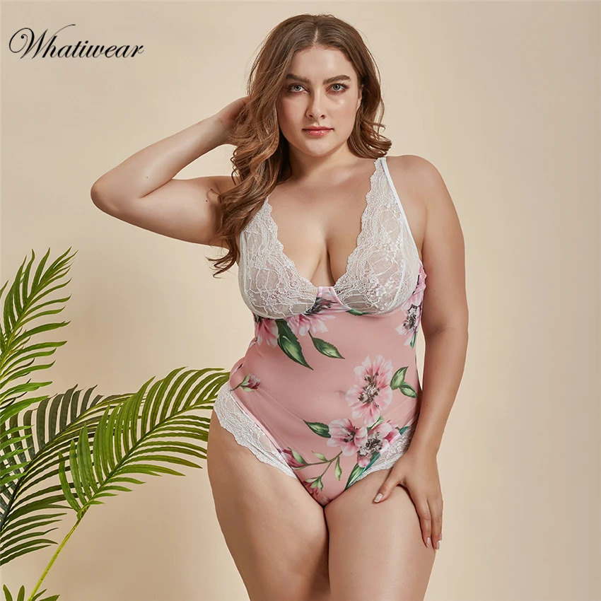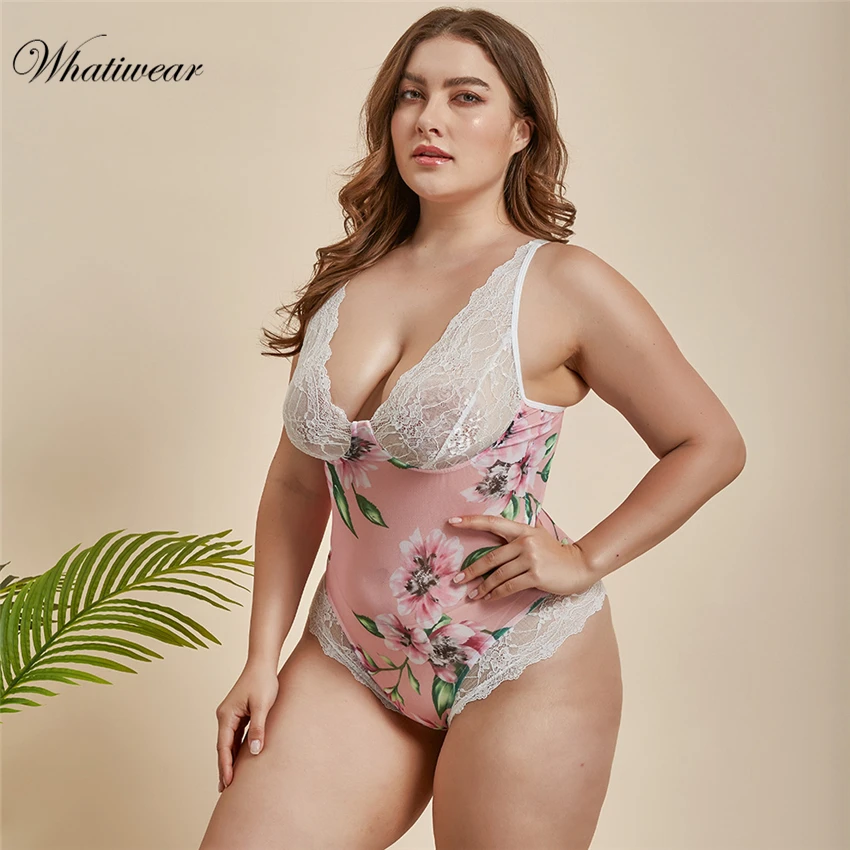 FREE SHIPPING Plus Size Deep V Neck lace bodysuit transparent flower body hot sexy teddies 2019 jumpsuits women deep V mesh Bodysuit JKP2736