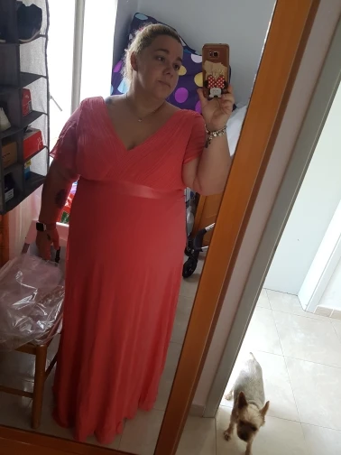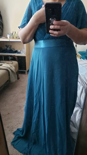 Very beautiful dress, looks exactly like the photo. I purchased this for my mom to wear to my brothers wedding. I would recommend this dress, shipping was very fast arrived in 11 days. Thank you store, I will post pictures next month when she wears the dress.... very pleased