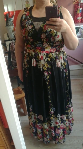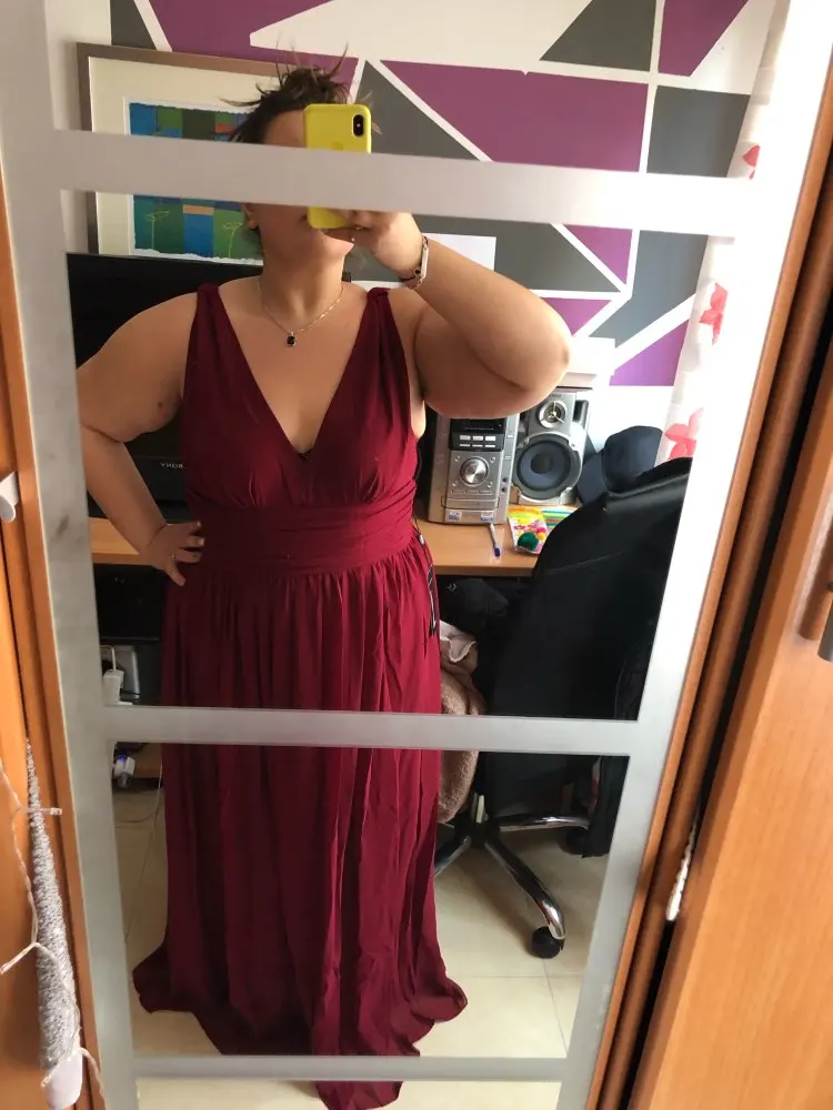 beautiful dress bit to open in the front was expected so now problem.. fit is wonderful could be a bit longer but maybe thats because i'm 1,80 meters