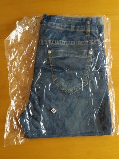 Delivery to moscow in 3 weeks, the track was tracked. Packed was just in the package. The material is thin and stretchy. Lightning will be constantly unbuttoned, under the button of the belt is not cut. The size grid is not correct. On the girth of the hips 117 cm took 32, the size had to be taken less, and that would be obtyag and 2. for a hot summer the most.