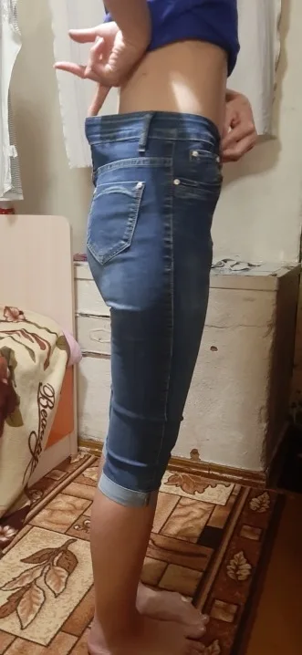 Delivery month, track tracked // capri liked, fabric thin stretch, seams neat, on the edge near the lock sewn braid // to sewing claims no, everything is very worthy, but with the size problem // bought 27 sizes for my parameters 79-93 they are very large, the front is a huge fold, the rear is all on the assembly, the dimensions that are indicated in the table are more by 4 cm. // 27 suitable for hips 98 no less // store agreed with my claims