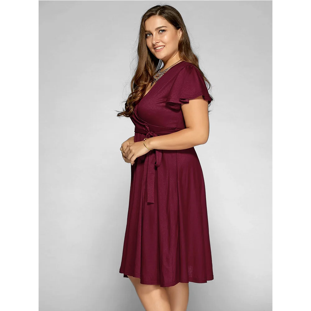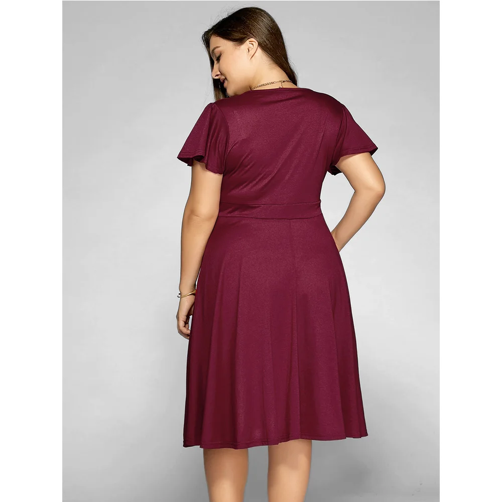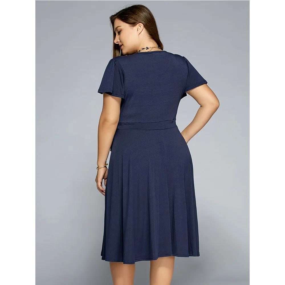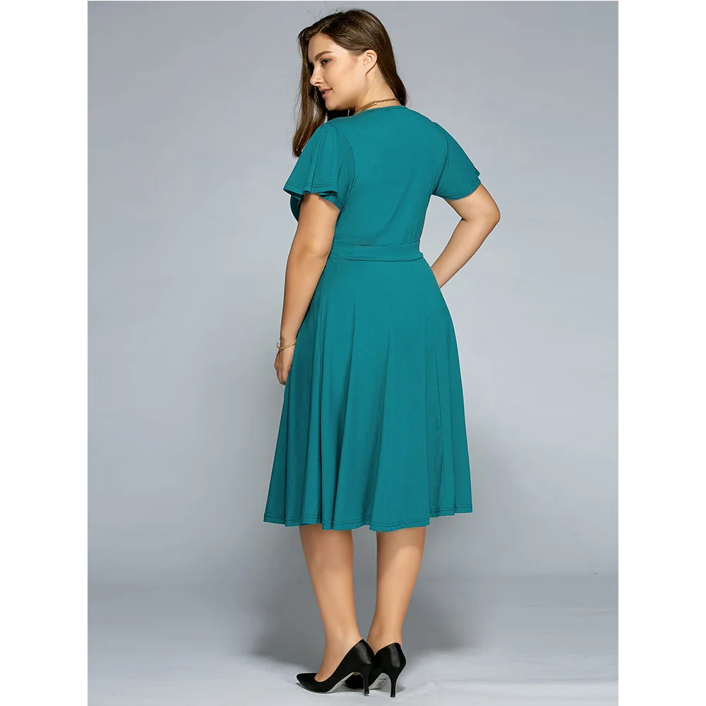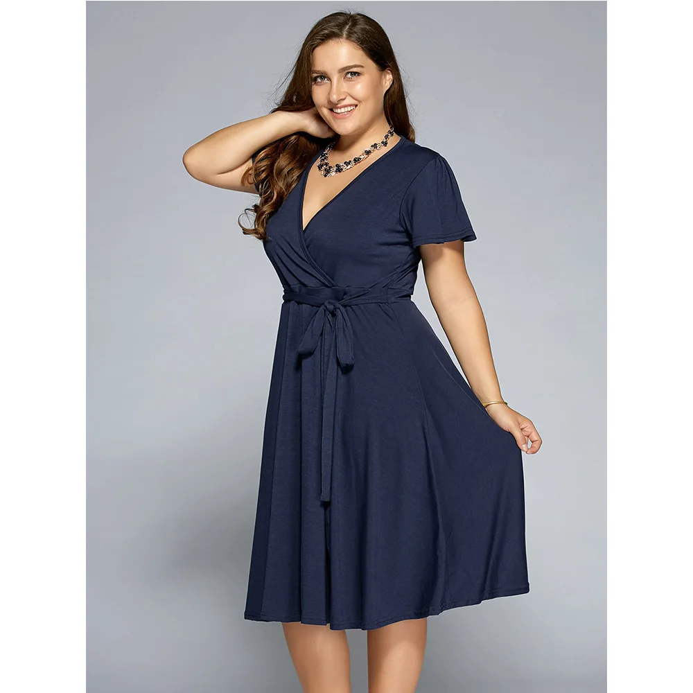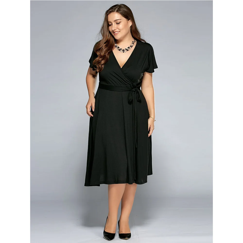 FREE SHIPPING Plus Size Vestidos V-Neck Formal Dress Short Seeve Solid Dresses High-Low Super-Elastic Dress Femme Summer Dress JKP2499