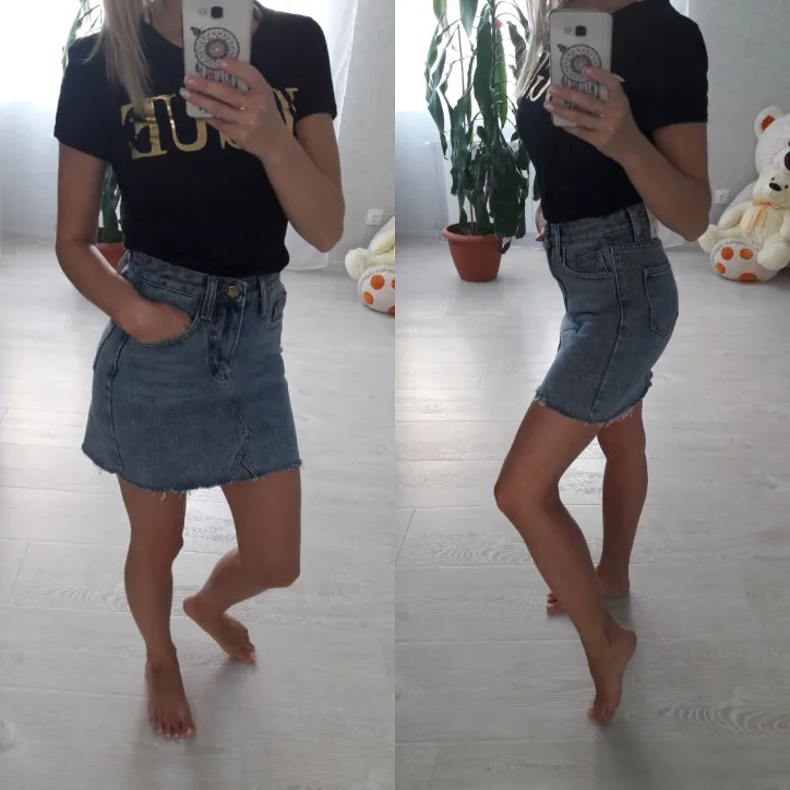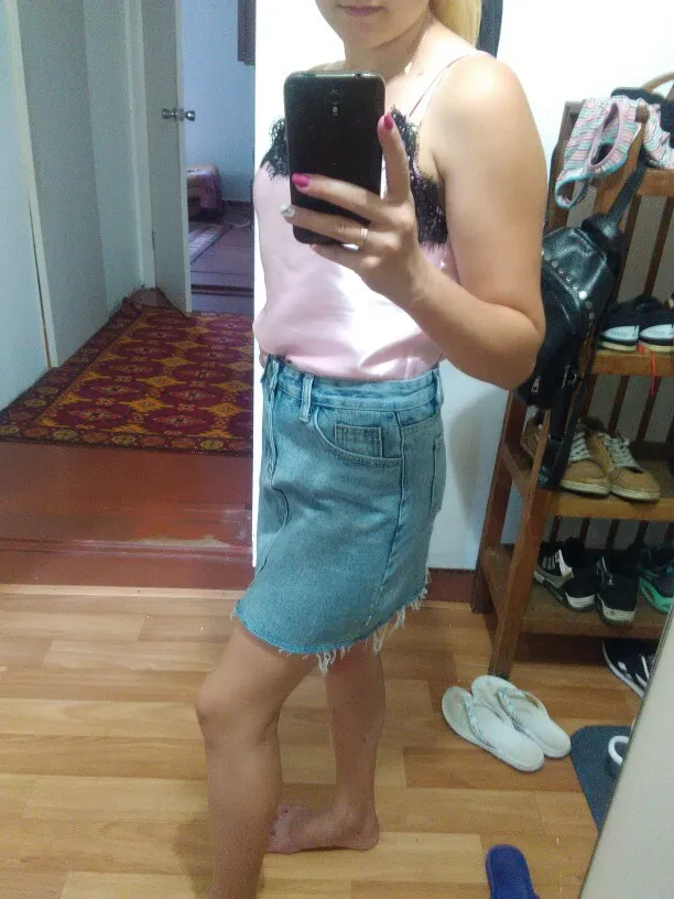 Юбка спидигонщик и добралась до меня за дней 10, пришла в почтовом пакете, не пахла ни кем и ни чем, бирок и нашивок нет, а вот лычка на месте! Юбка реально джинсовая, из добротной джинсы, не тянется. Влюбила в себя нереальным швом⚡️ И вот тут-то самое интересное, я с трудом её застегиваю, благодаря моим бедрам, это печаль, т.к спустить её не получается вообще, за счёт этого страдает длина. Ходить я в ней хожу, модничаю, а вот присесть отдохнуть - проблема, юбка села как влитая. А вообще, юбка мегакрутая, если в раздумьях брать или не брать, одозначно БРАТЬ!