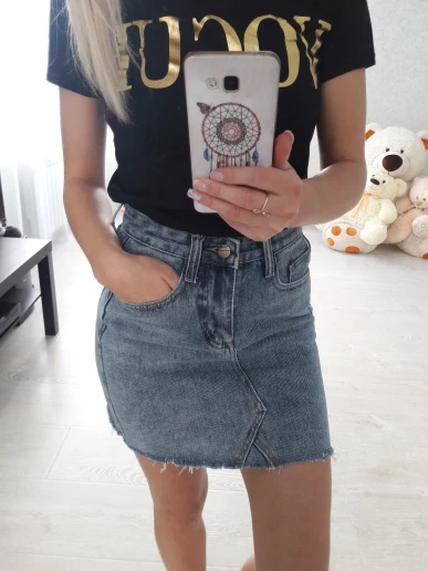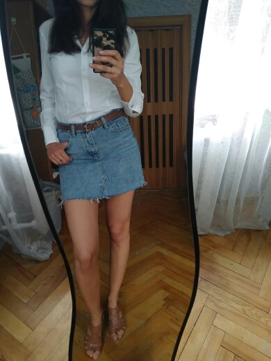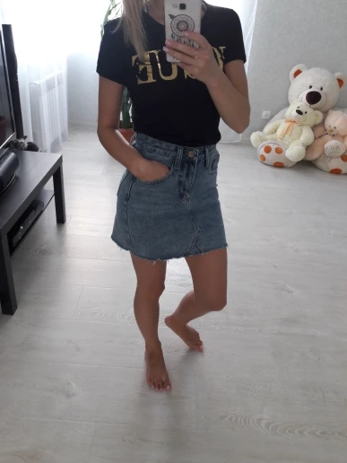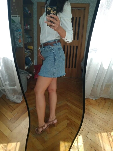 Great skirt tight jeans. Shipping to Ukraine service "Ukrposhta" took 18 days. You can track the parcel on the whole route. Size L waist 78 hip 92 OK village. But it seems to me that the waist 76 cm, skirt would sit more comfortably. Waist more than 78 cm, not advise, will press the belly. Growth 165 cm skirt as the picture, to rise above the length is extremely short.