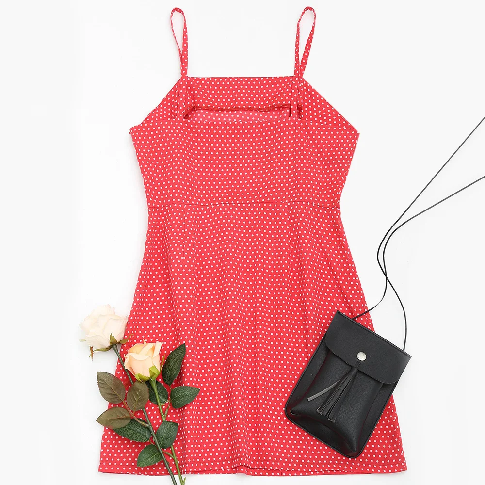 FREE SHIPPING Polka Dot Spaghetti Strap Cami Dress JKP1198