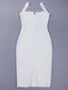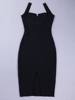 Women v neck spaghetti strap split front black white rayon night club dress JKP574