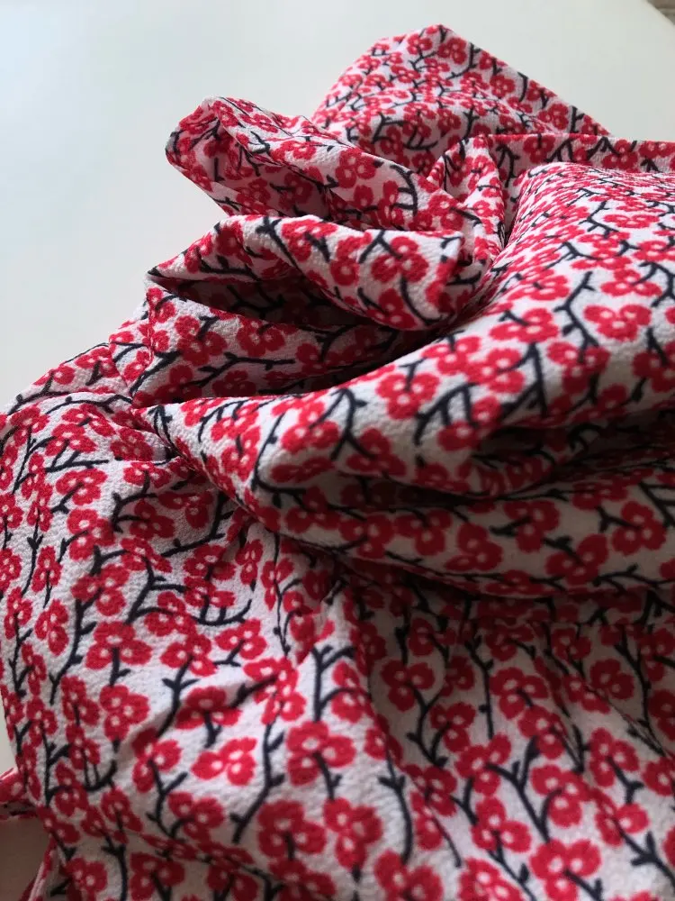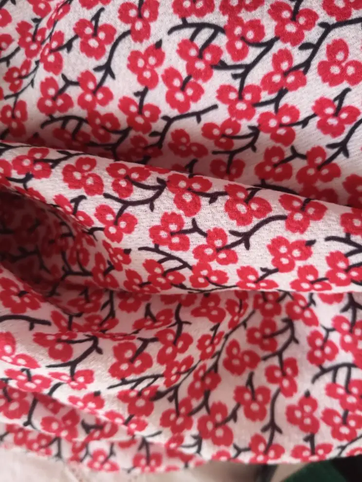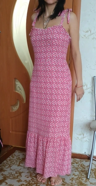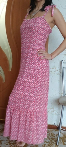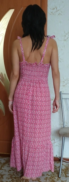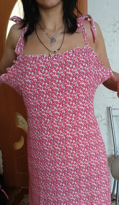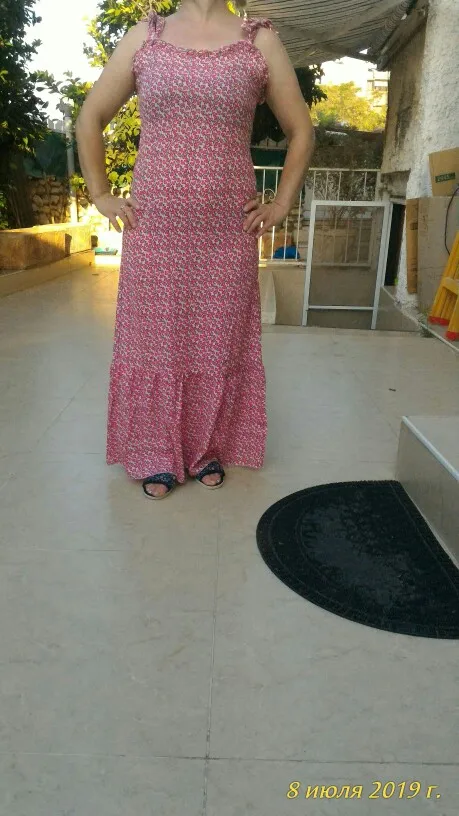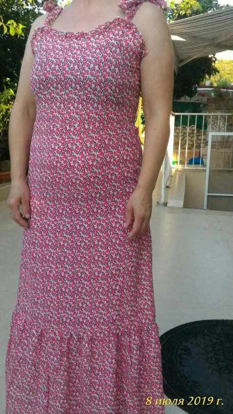 Lovely summer dress. The track was tracked, in ufa came about a week for 3. synthetic material, which fully corresponds to the description of the goods from the store. On my parameters-height 180 cm, chest 92, waist 72, hips 98, the seller advised the size m, but i insured and took l. the result-the dress is large in the waist and on the back loose sagging elastic. From the position came out just an elastic band on the back made tighter, and ordered a white and red belt to the dress. To the dress it is necessary to choose the underwear of flesh color, because. Any other will shine through, also shine through the outlines of the silhouette of the body. In general, the impression of the dress is more positive, the purchase is satisfied. P.s. In the photo, the dress turned pale. In fact, the color is juicy. Print black and red
