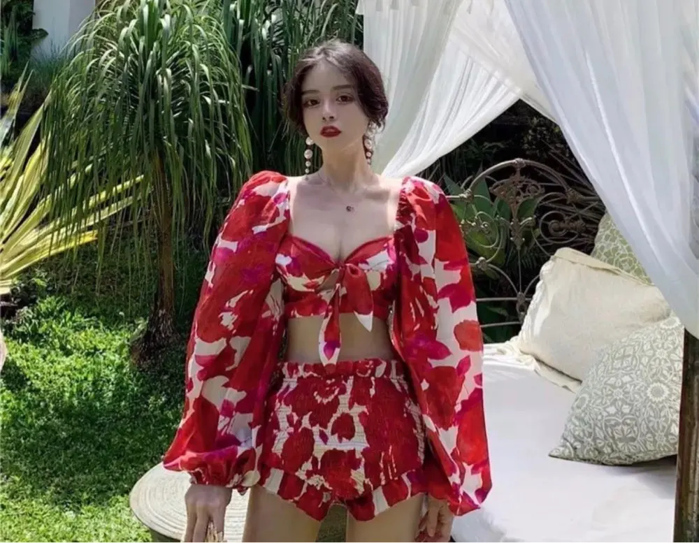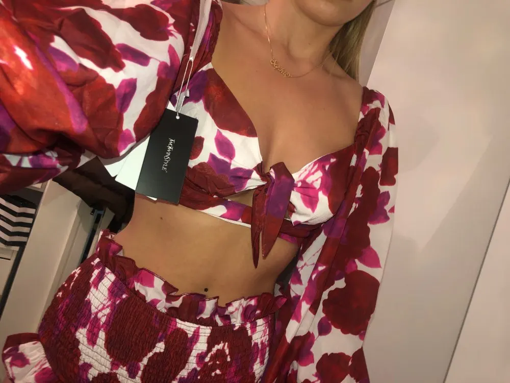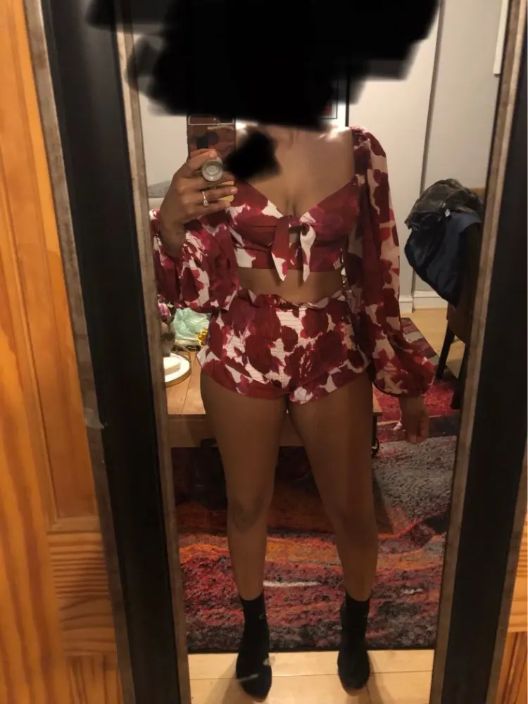 After purchase I changed my order to a medium. The store was very helpful and changed the large to a medium for me. This set is super cute but wish I got a larger bottom. The outfit was same as photo. I’m 5’5 and 137 pounds.