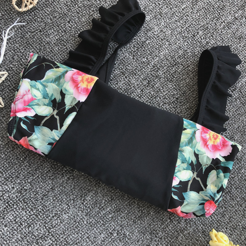FREE SHIPPING Printed Women’s Sexy Bikini Ruffled Skirt Swimwear Women’s Simple Fashion Bandage Beach Swim Halter Strap Sexy Bikini Set JKP2775