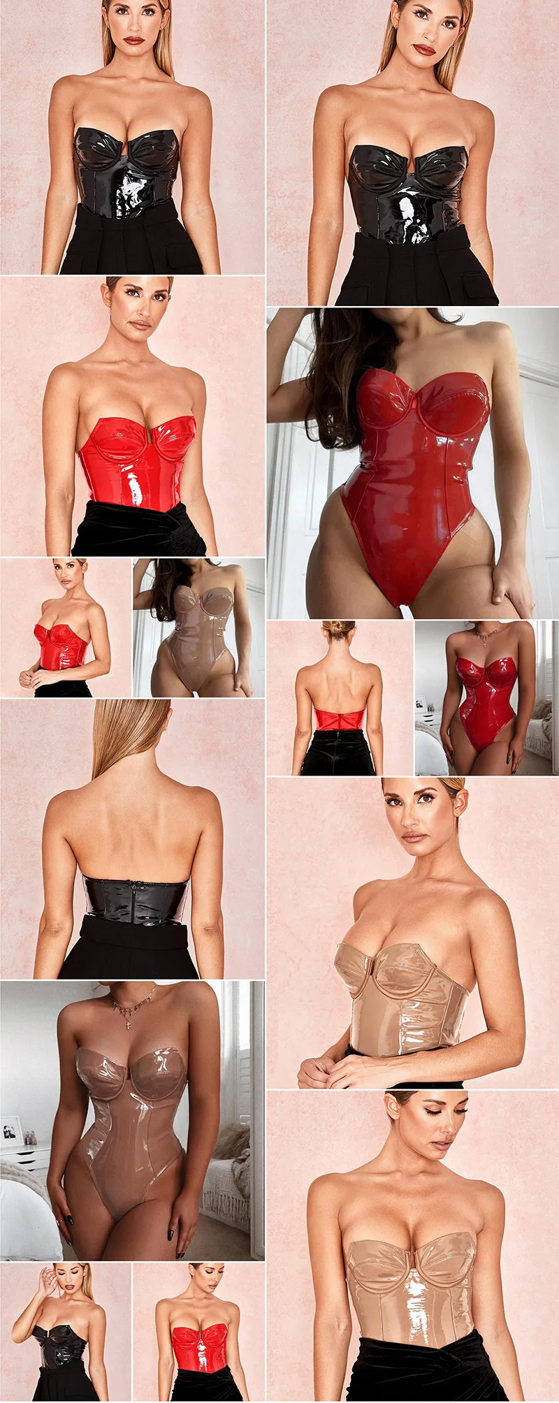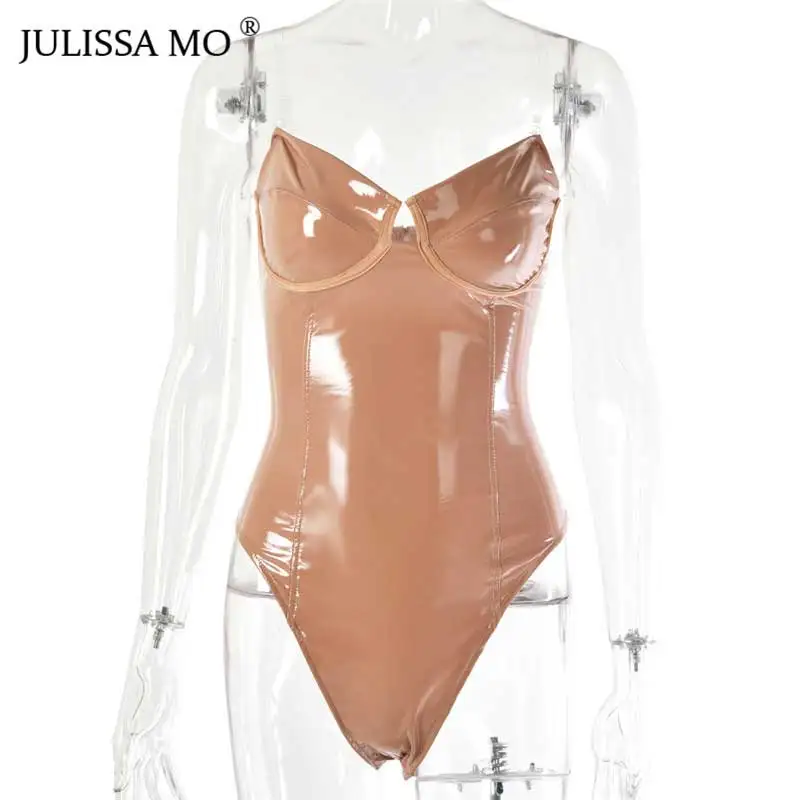 FREE SHIPPING PU Leather Sexy Strapless Bodysuit Women Sleeveless Backless Jumpsuit Women Rompers Black Casual Body Mujer Femme JKP1895