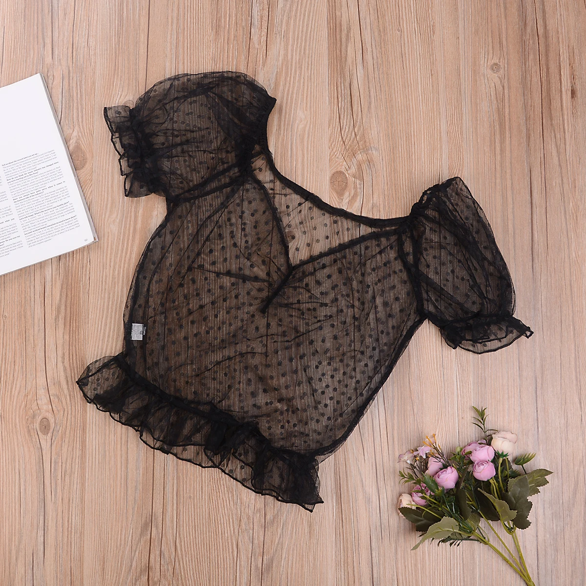 Came in time. As expected, it's more sheer than in some of the store's pics. My measurements are: 82cm/32in chest, 65cm/25in underbust and 60cm/23in waist, ordered a size S following the chart and fits just right. It's very fragile and you need to be really careful putting it on though, it feels like it's gonna be too small but it's not. The fabric isn't stretchy, but it has some elastics on the sleeves, waist and back - still not stretchy enough to fit someone bigger.