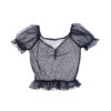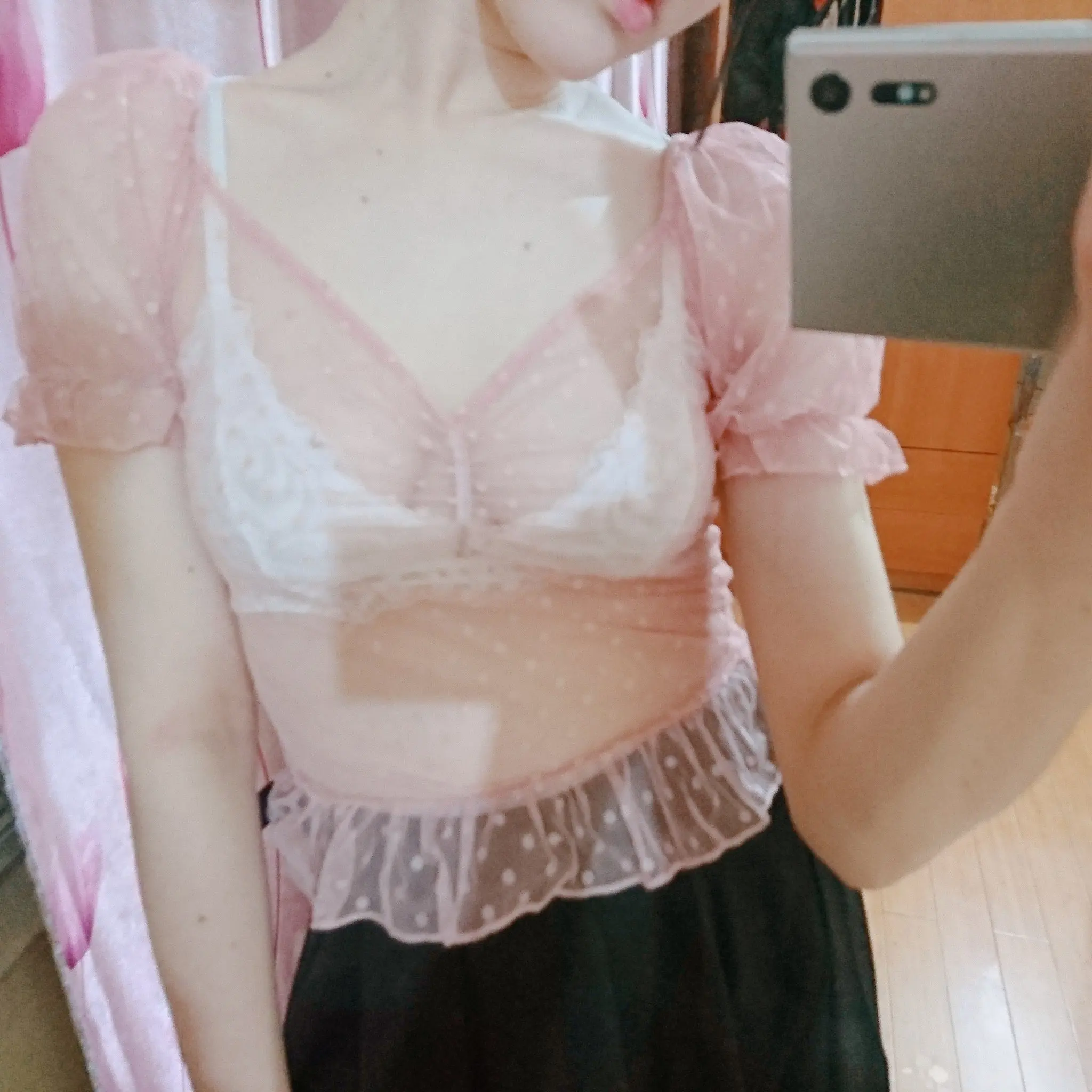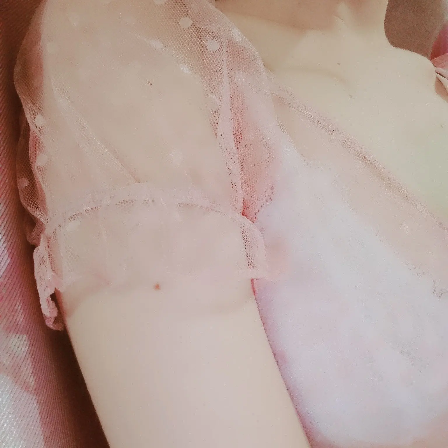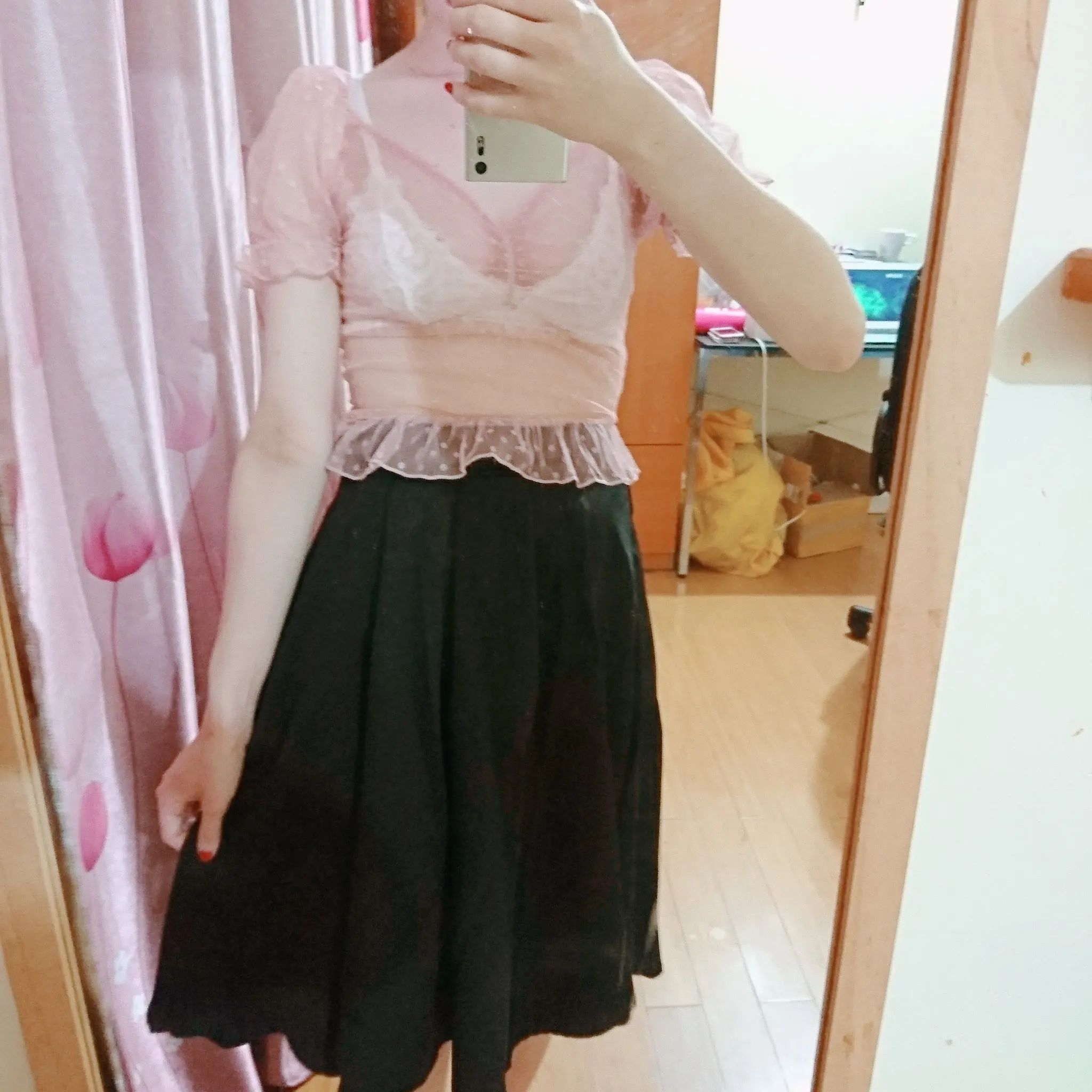 No stretch, when putting it on be very careful because i heard some of the threads make a strained sound. The elastic isn't too tight. 84cm bust, 66cm waist, 167cm height. The sheer fabric is so lovely and the dots and ruffles show up well. It's a little itchy on the skin but wonderful when you layer it. So cute, I wish there was more colors. The pink is a little dustier than in the stock image. No bad smells, one loose thread.
