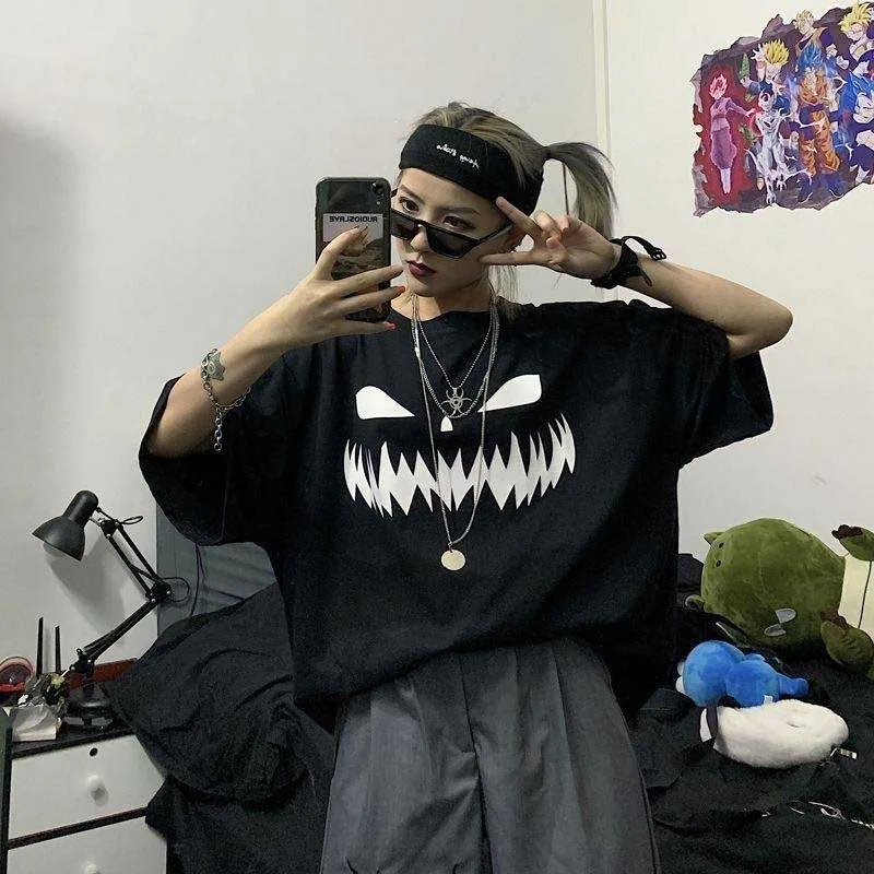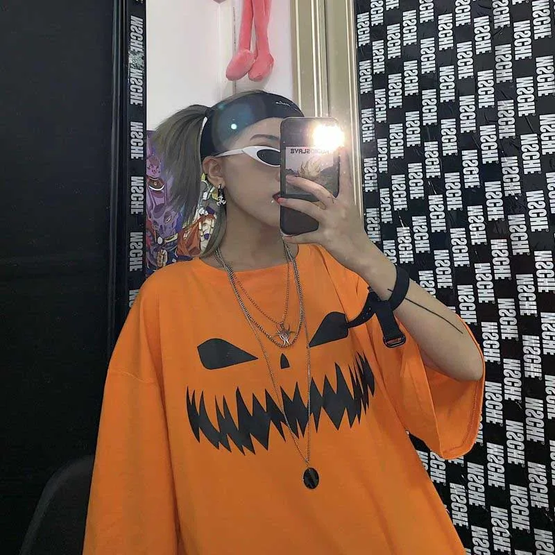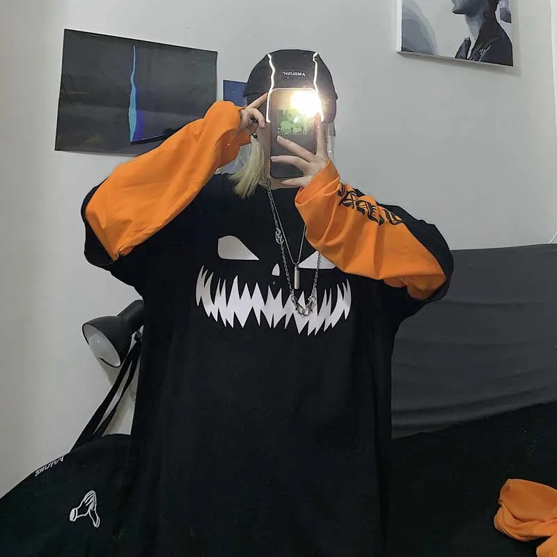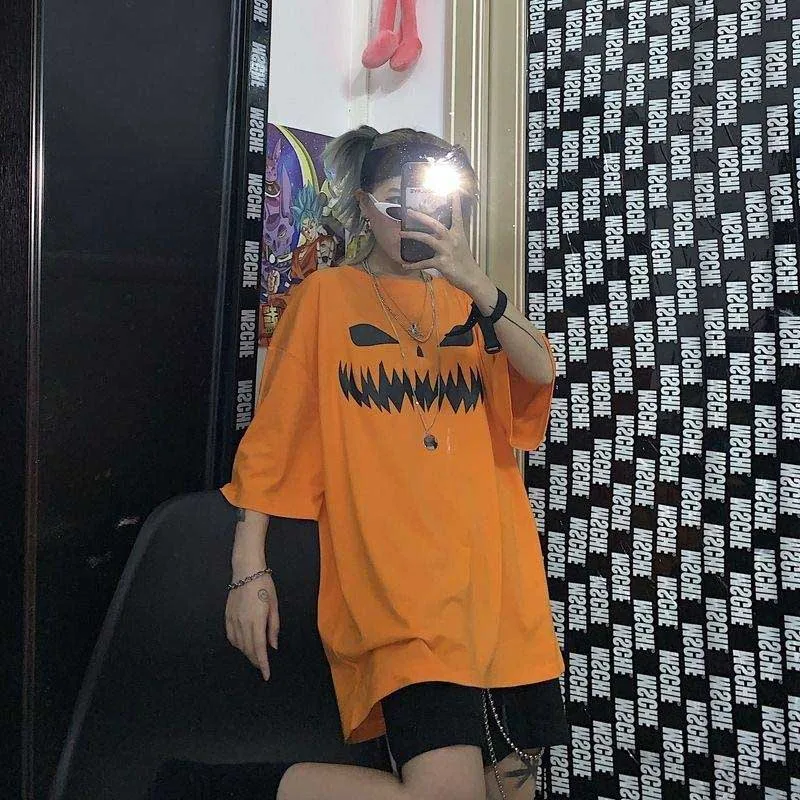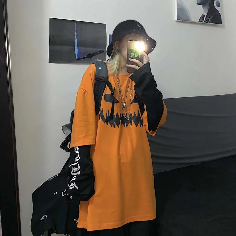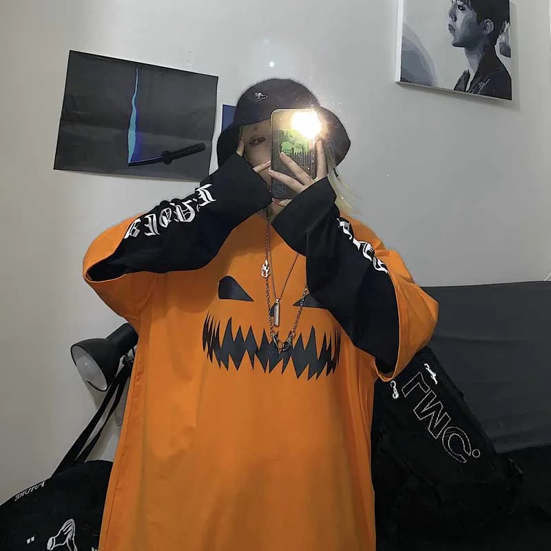 FREE SHIPPING Pumpkin Face Print T-Shirt JKP4343