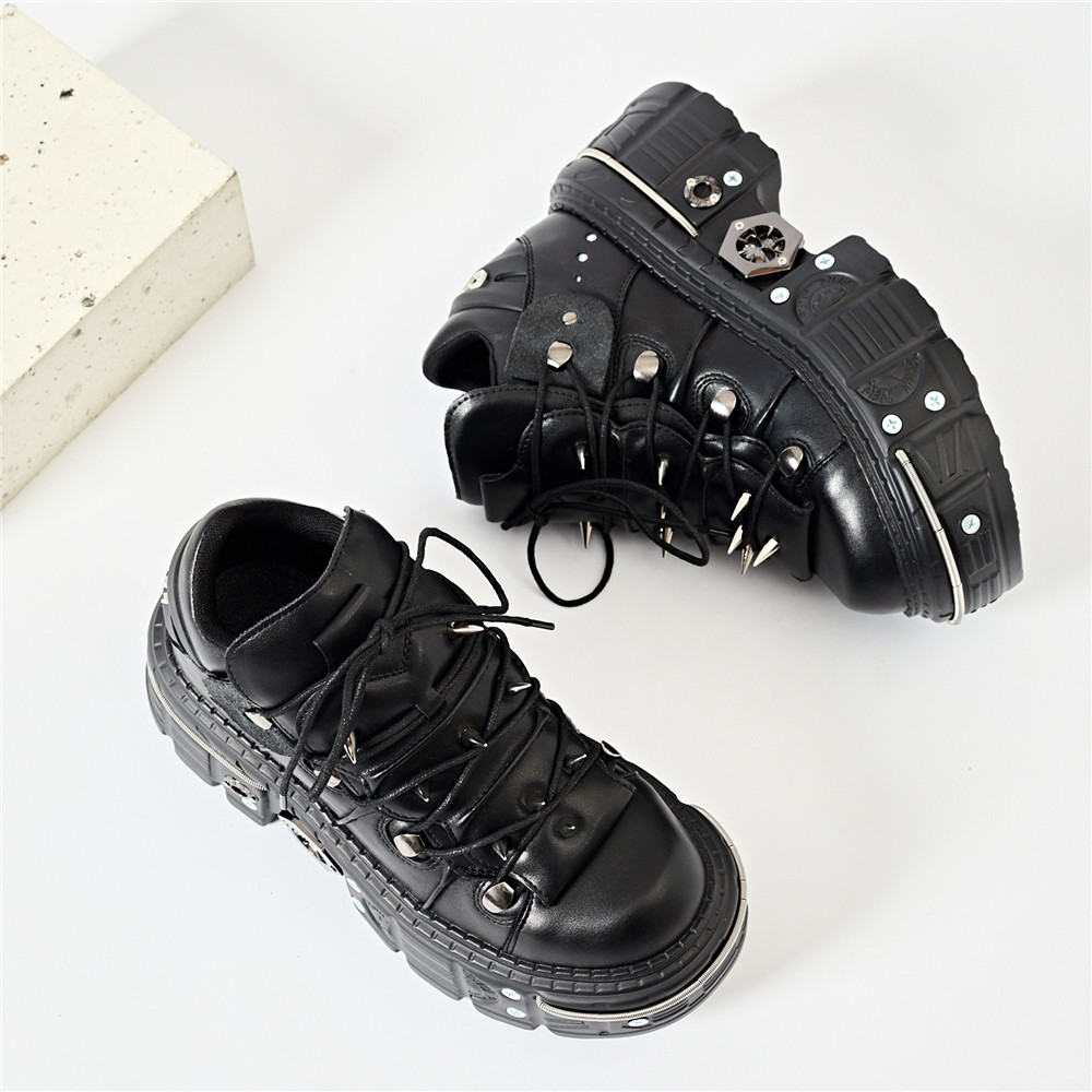 FREE SHIPPING Punk Rivet Platform Ankle Boots Lace Up Rock Nightclub Shoes JKP7315