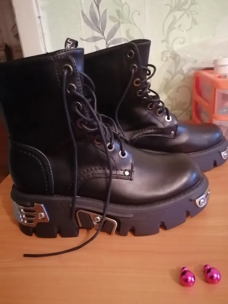 Ботинки прекрасные... Продавец хорошо упаковал, никаких дефектов и склеек. Подошва будто мягкая в носке, очень нравится, что они гибкие. Бонусом я получила серьги в виде жемчужин. Покупкой довольна. С размером не прогадала благодаря размерной сетке. По виду точно как на картинке. В Украину пришли быстрее ожидаемого. И да, я их уже носила.