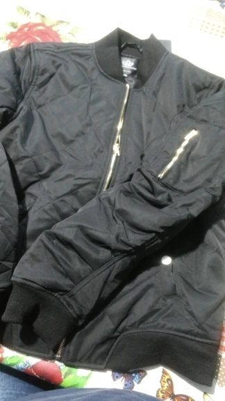 The bomber jacket is good, if you get used to the strange sewing of sleeves-assembly. Well, as many write, the accessories of different colors-not very branded looks. The size table seems to match, maybe even a little more in real life. Inside the synthon. In some eyelids there is a loop-hanger.