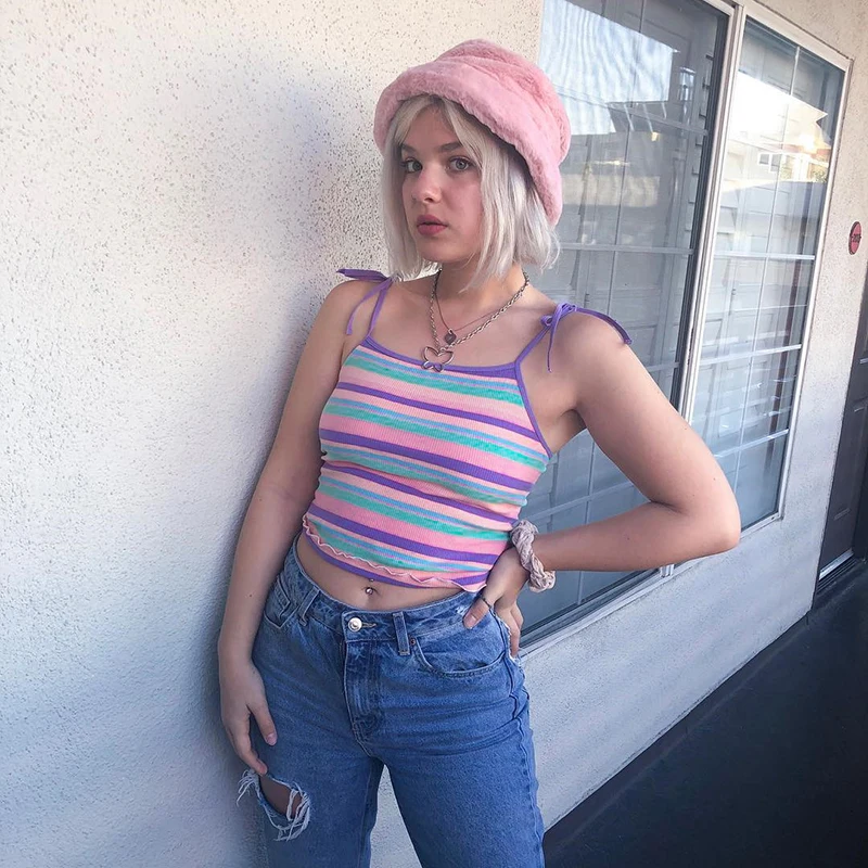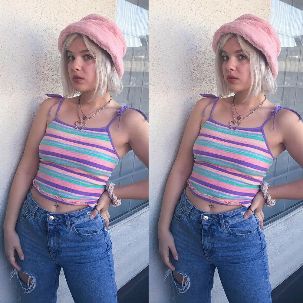 FREE SHIPPING Rainbow Sphagetti Strap Crop Top JKP3098