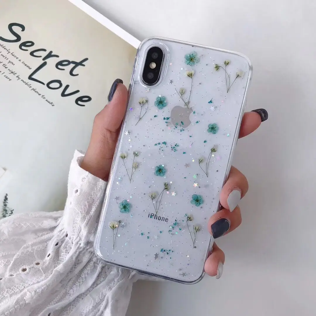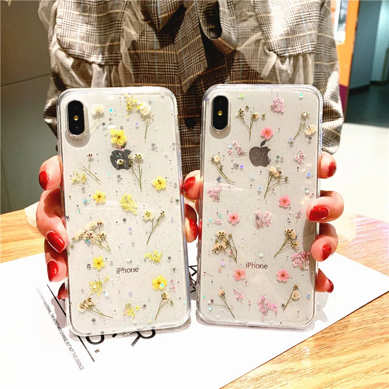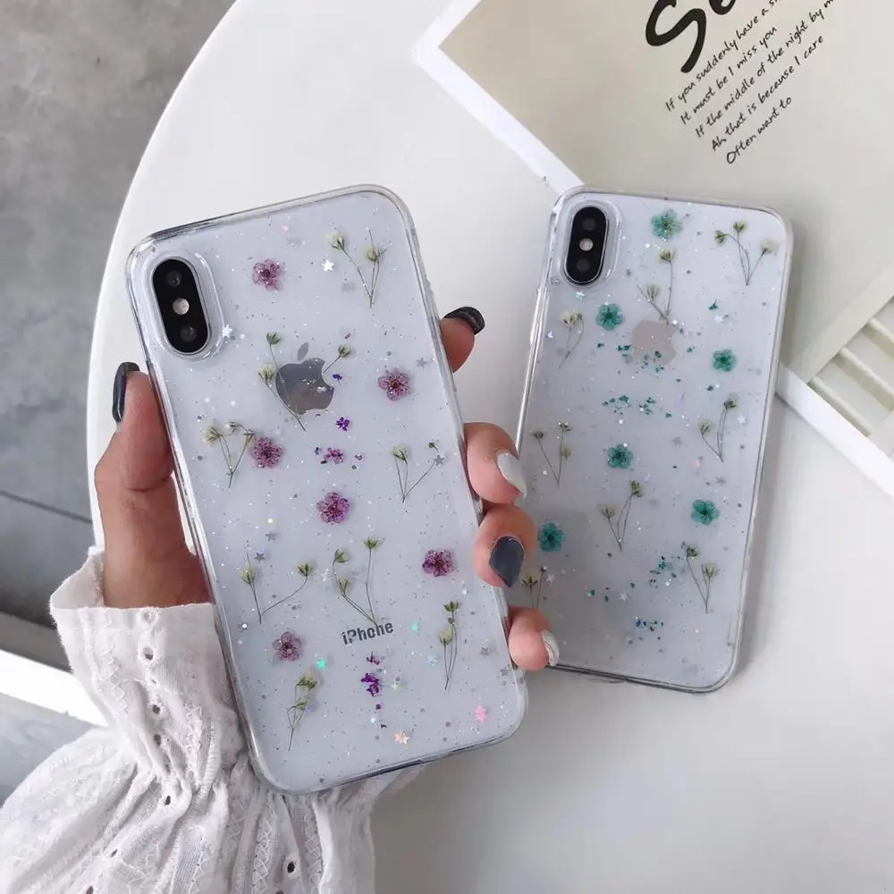 FREE SHIPPING Real Dry Flower Glitter Clear Case For iPhone X XR 11 Pro XS MAX 8 7 Plus 6 6s