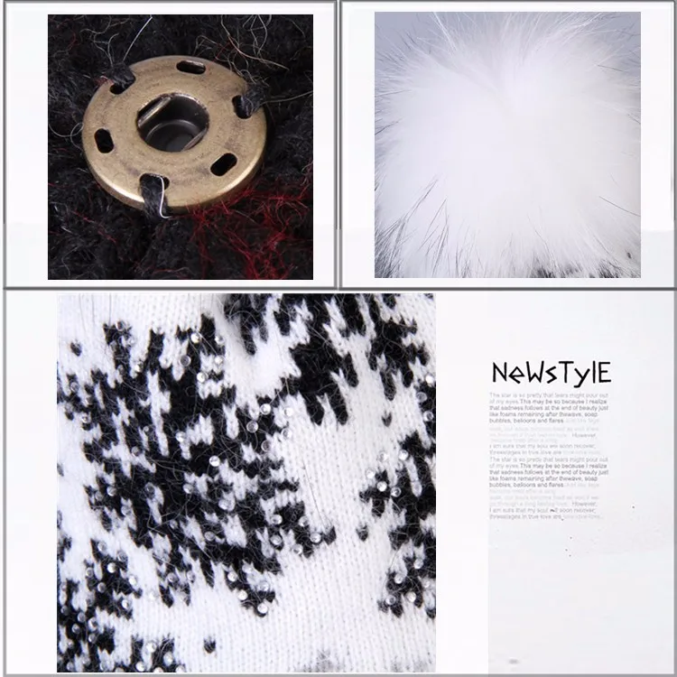 FREE SHIPPING real mink pom poms wool rabbit fur knitted hat Skullies winter hat for women girls hat feminino beanies hat JKP2476