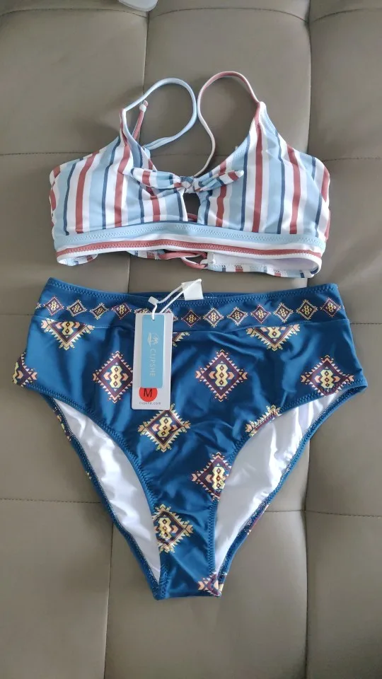 Beautiful bikini. Didn't expect such great quality material and made. Pleasant, soft textile, linen, design, adjustable straps. Pants seem a bit too large for me (98-73-99) but my butt is pretty flat recently. ;) This is my second awesome purchase in this store and I will definitely come bak again. Thank you store, you are doing good job offering very good product for very good price. Very fast shipping. I really highly recommend!