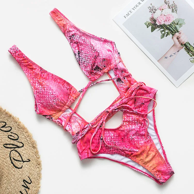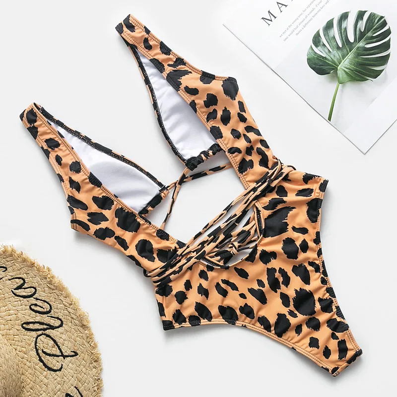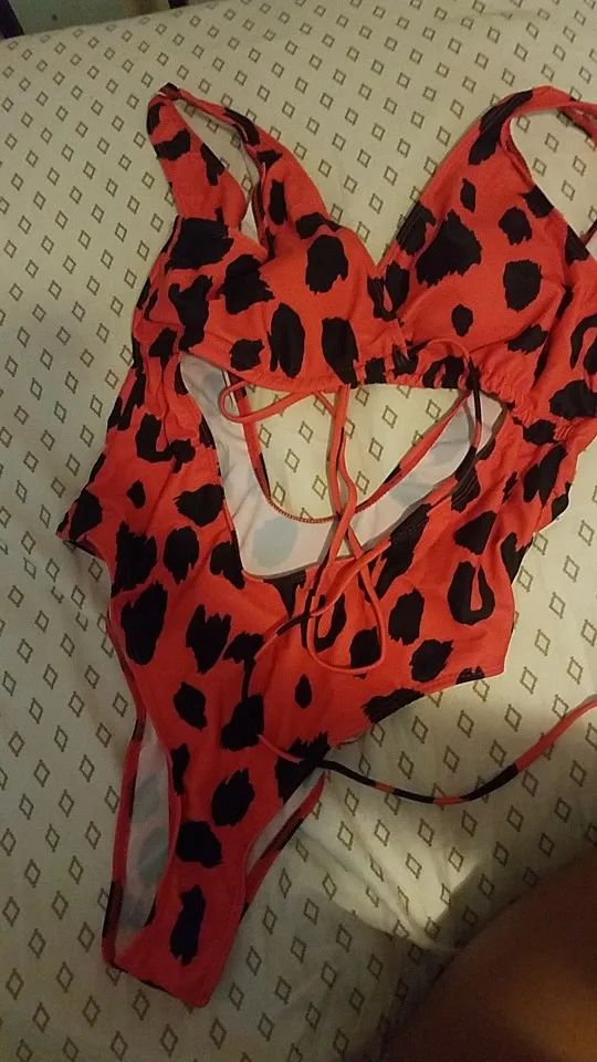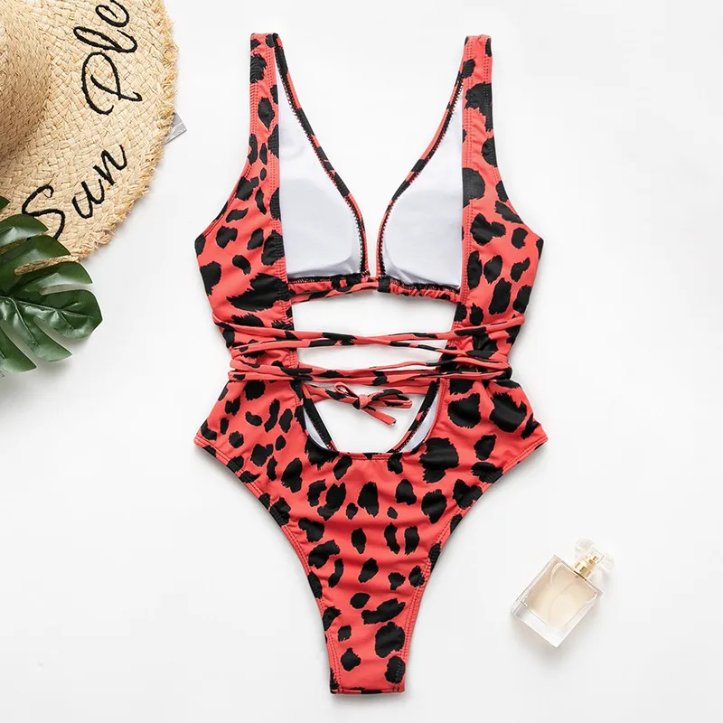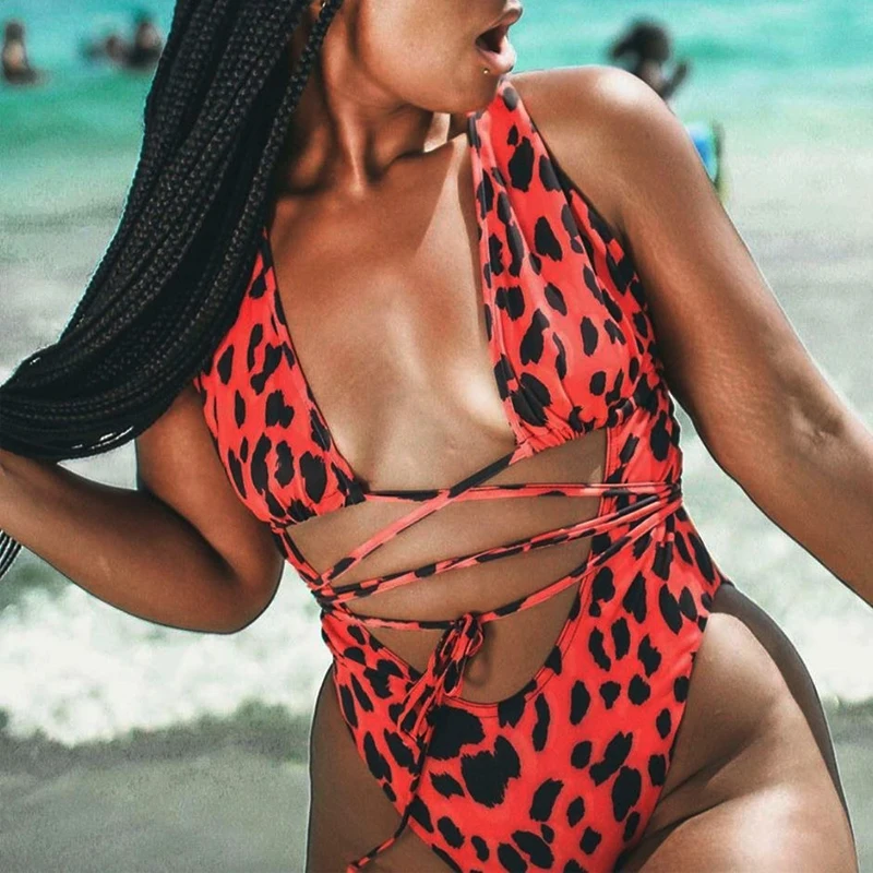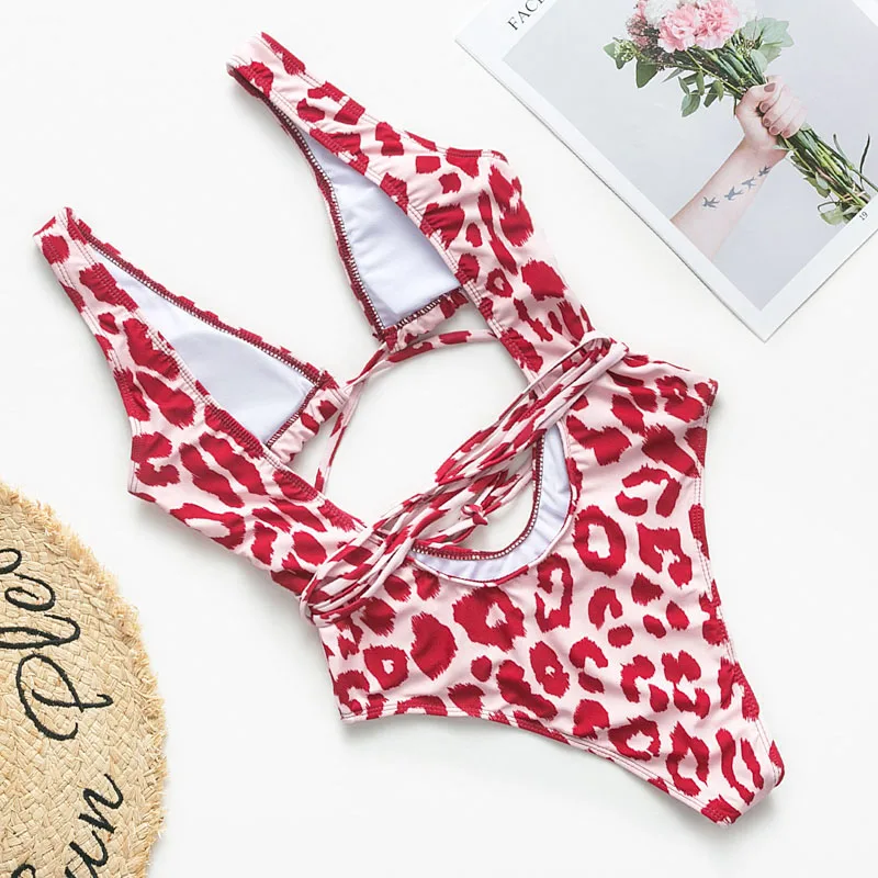 Red leopard monokini