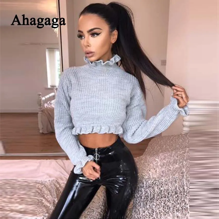 FREE SHIPPING Red Ruffles Short Knitted Top JKP759![a1]()