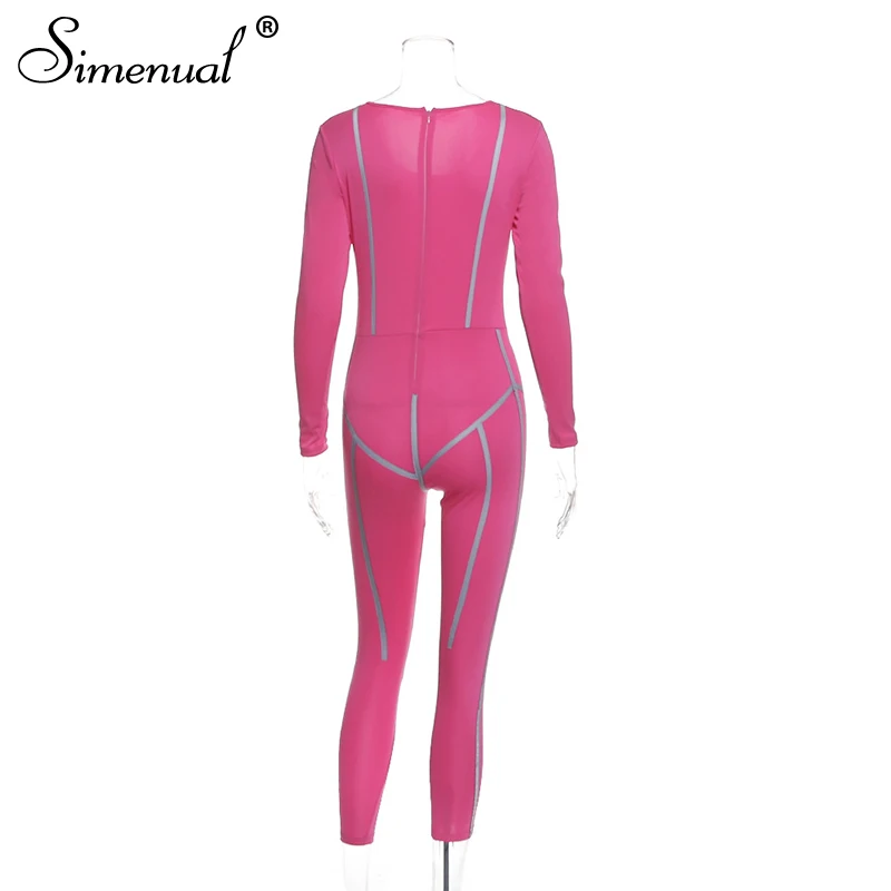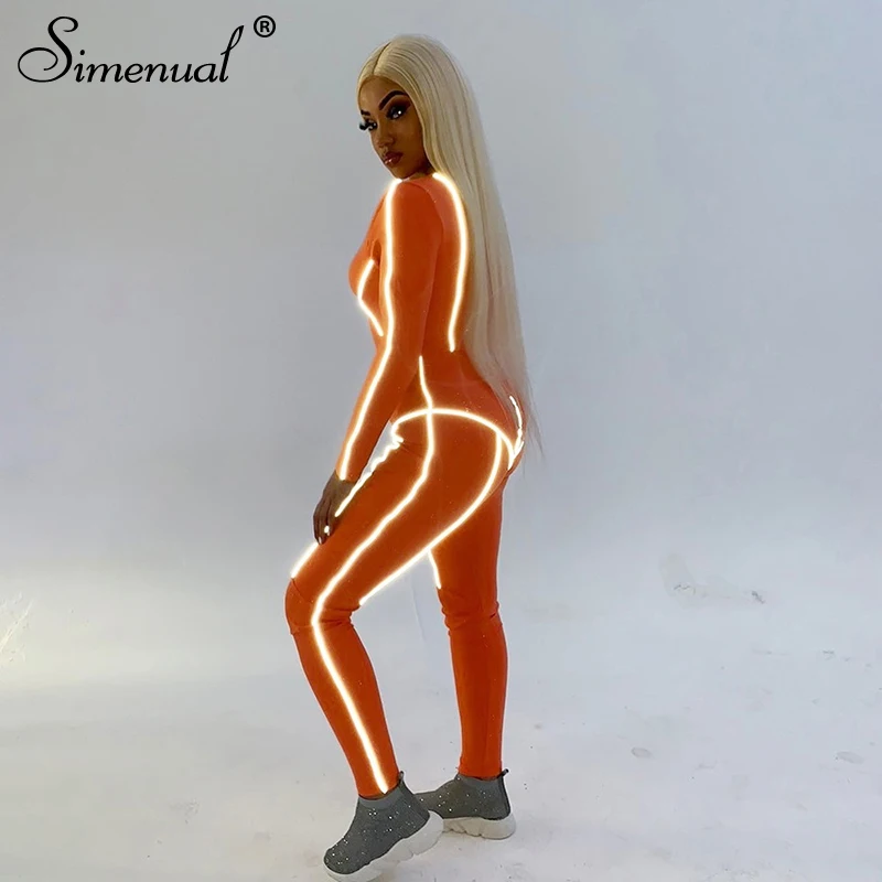 FREE SHIPPING Reflective Lines Fitness Rompers Womens Jumpsuit Sporty Long Sleeve Active Wear Active Wear Autumn Jumpsuits Casual Hot JKP2004