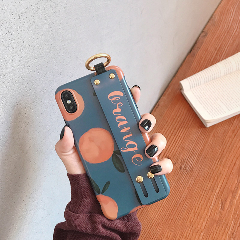 FREE SHIPPING Retro Painting Orange Phone Case For iphone X 8 7 6S 6 plus Case For iphone Xr XS Max Back Cover Fashion Wrist Strap Cases Capa JKP2015