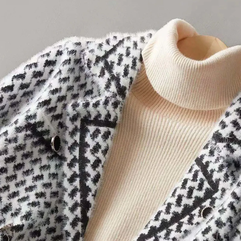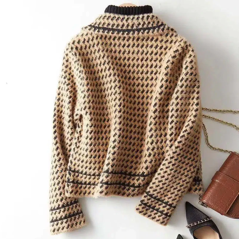 FREE SHIPPING Retro Plaid Knitted Sweater Korean Style JKP6123