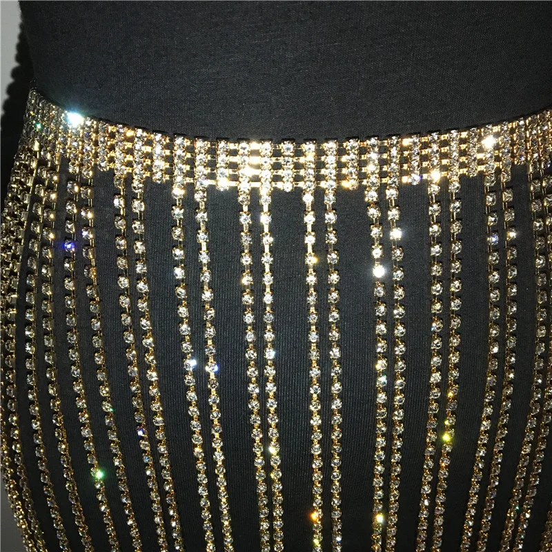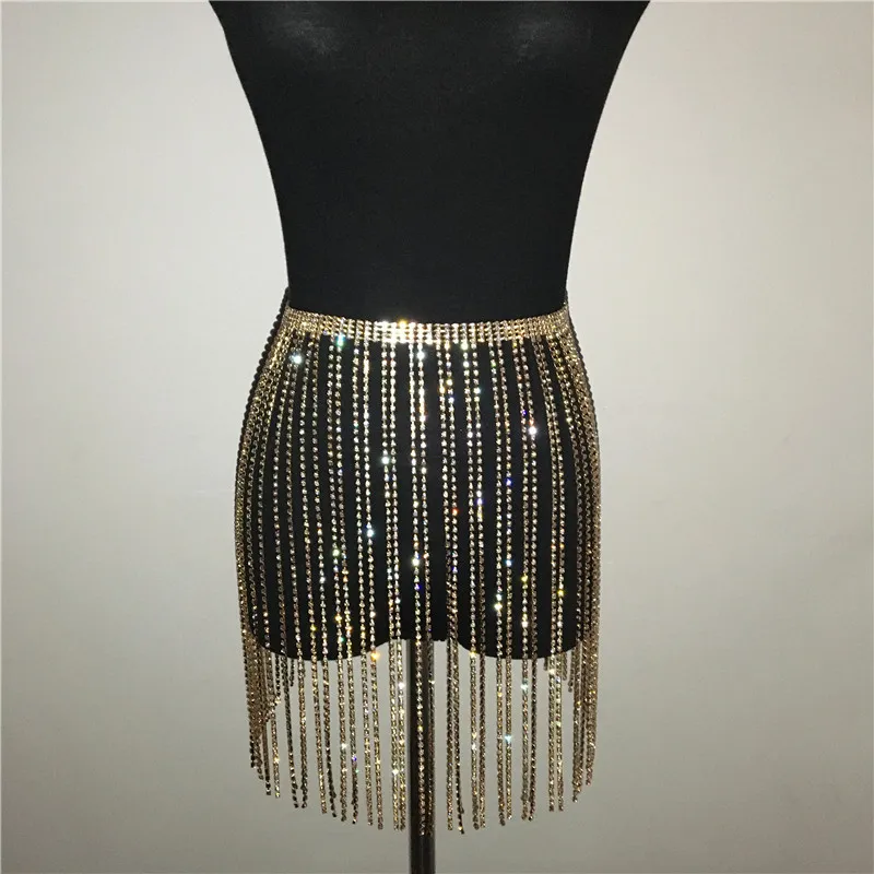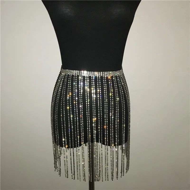 FREE SHIPPING Rhinestone Tassel Long Skirts JKP4334