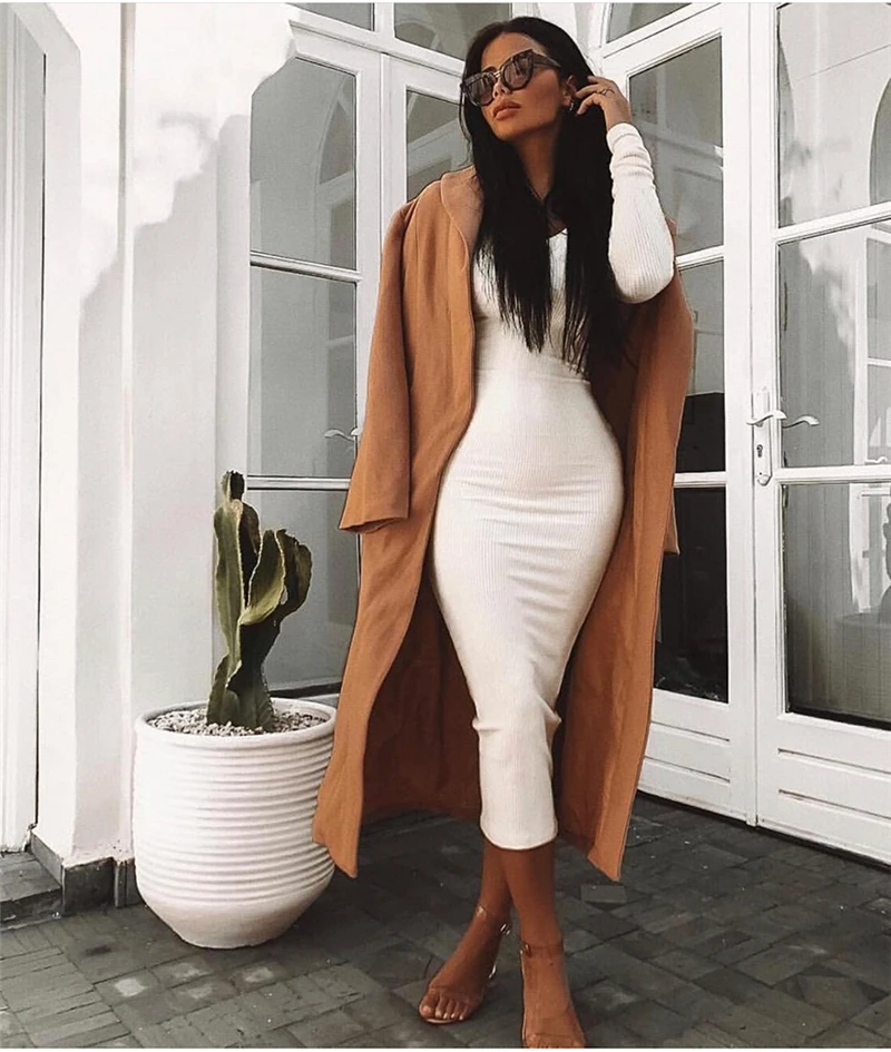 From the first time i did not understand this dress))) you need to get used to, try to wear with body underwear. So i'll write a review later. Dress bought xl on Рост-174 Weight 67 Og 100 From 80 About 100 The dress is very narrow, but stretches, walking comfortably, gait is not geisha) the length of the sleeves is excellent. The length of the dress below the knee is 10-12 cm polyester fabric, not knitted. the size would be bigger, but i will try to wash, pat, can sit down softer .... and the dress is beautiful)