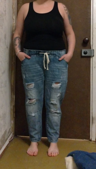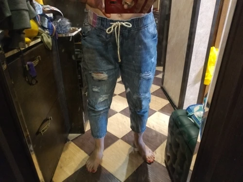 Jeans of excellent quality, dense, I already waited for an Alisha rag, but no! they cost their money, sit perfectly, with the effect of light motney-perfect! you can and the size is smaller, even if you want two, but then it will be in the guise, not like on the model. Delivery less than a month! I will order more and advise you.