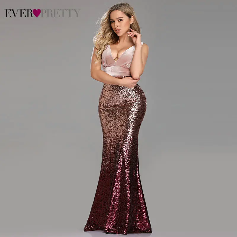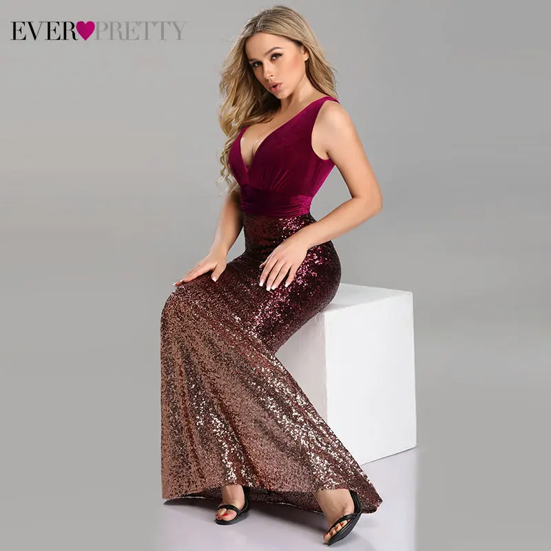 FREE SHIPPING Robe De Soiree Ever Pretty New Sexy V-neck Sleeveless Mermaid Burgundy Long Evening Dresses Elegant Abendkleider JKP2986