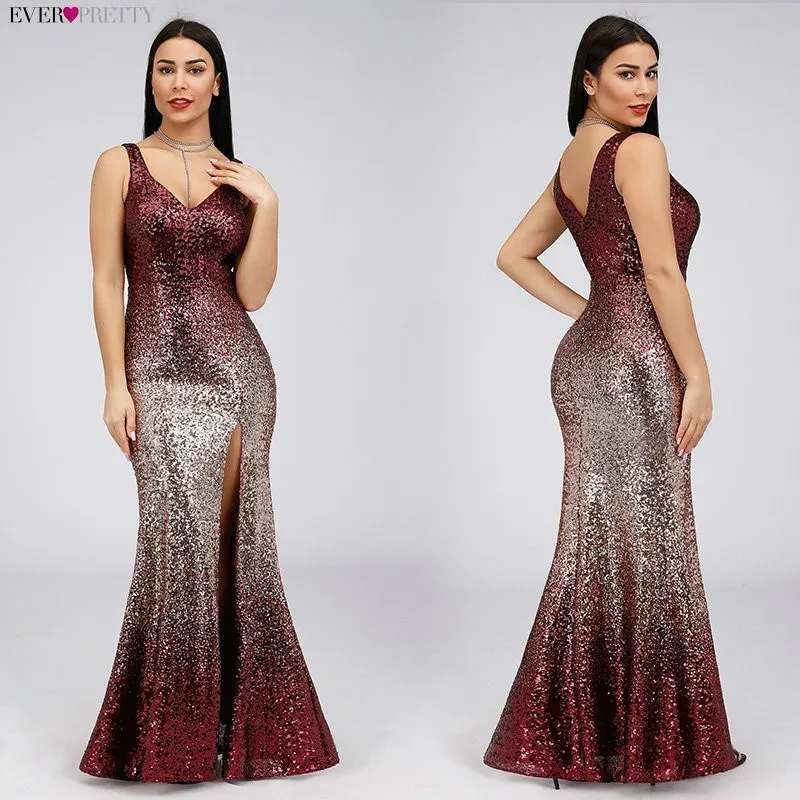 FREE SHIPPING Robe De Soiree Longue Ever Pretty Cheap Little Mermaid Burgundy Red Sexy Evening Dresses Sequined Sparkle Plus Size Party Gowns JKP2988