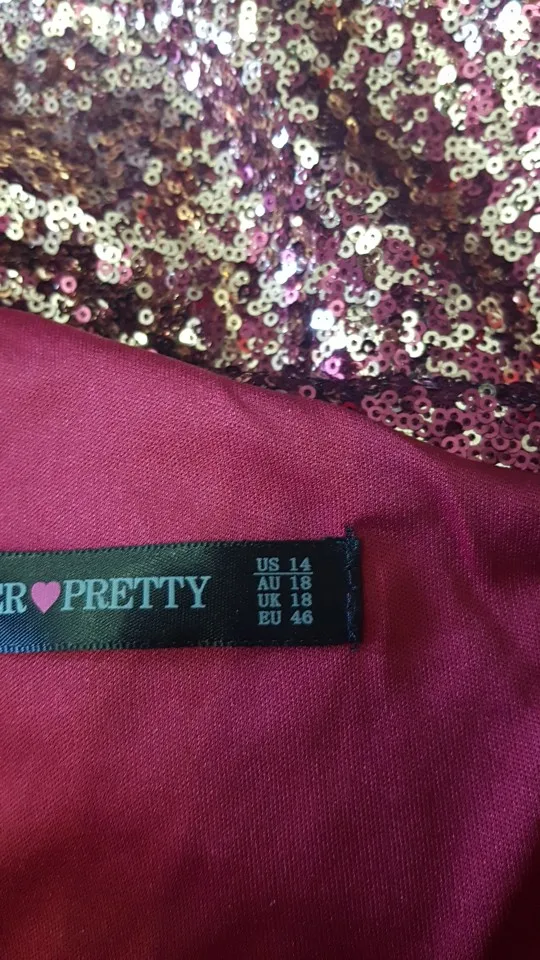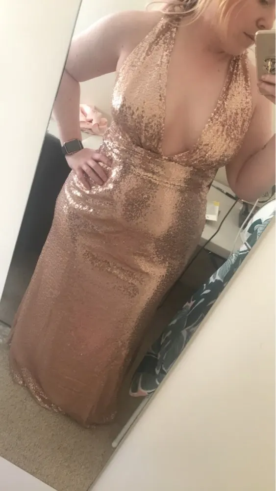 The dress corresponds to the photo of the store. The dress of the company "ever pretty", the color of beige, triple-at the bottom of a knitted cover, over its tulle mesh with a spraying pattern with sequins, and on top another layer of thin one-color tulle. The dress has cups on the chest, zipper side on the left, the back is open enough (but not to the waist). The dress is very beautiful., But .... sequins oooochen sprinkle, very (it's good that they are covered from above with another layer of tulle). However, both the product and the seller i recommend to everyone. The seller is responsive, the goods correspond to the photo, the size grid of the seller corresponds to the size of the dress. Shipping is not the fastest this time, but the track was tracked.