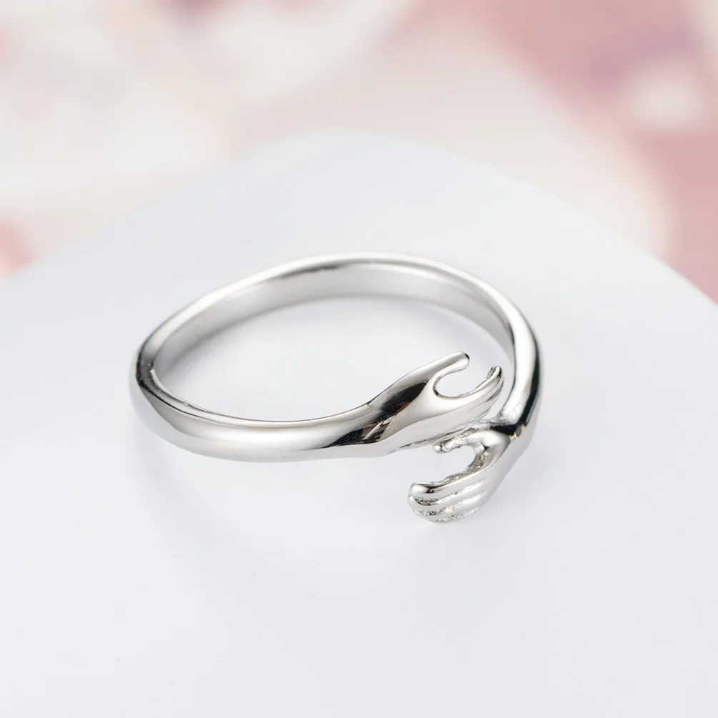FREE SHIPPING !! Romantic Hands with Love Hugs Titanium Steel Ring JKP810