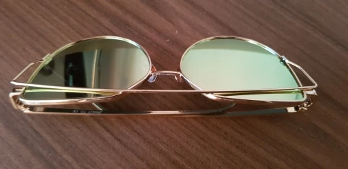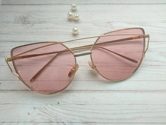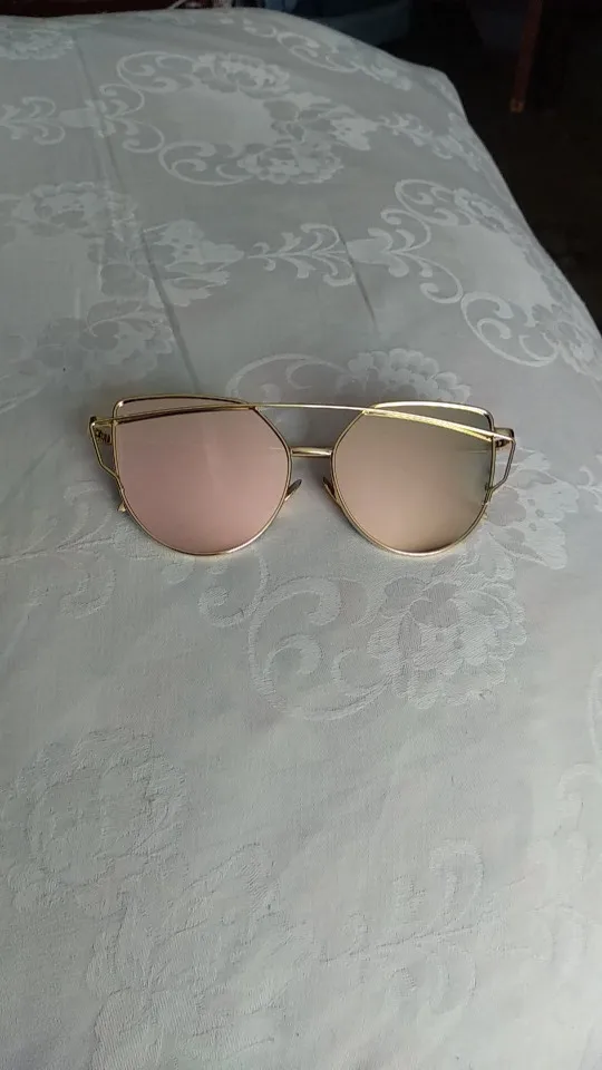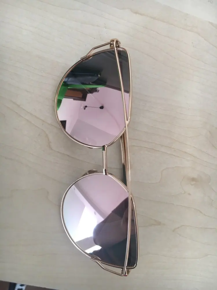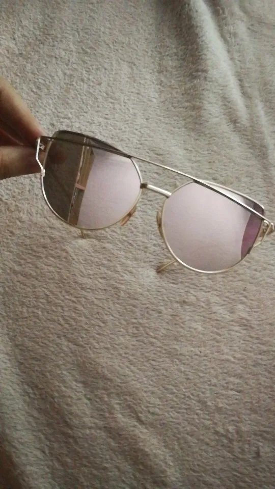 Очки пришли через 3 недели. Стекла пластик, оправа - металл. За эту цену нормально, хотя можно найти их еще дешевле https://ru.aliexpress.com/item/2017-Cat-Eye-vintage-Brand-designer-rose-gold-mirror-Sunglasses-For-Women-Metal-Reflective-flat/32815226443.html style='position: absolute'