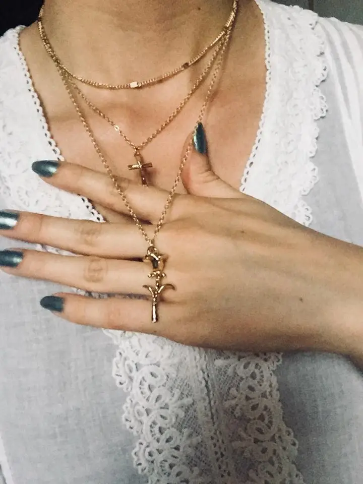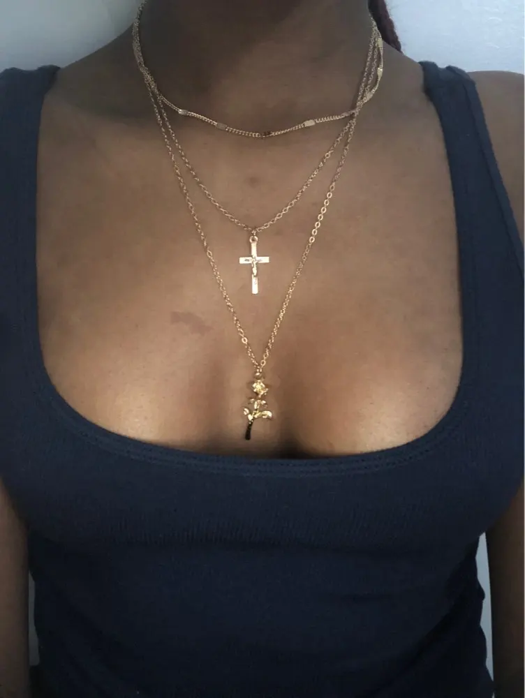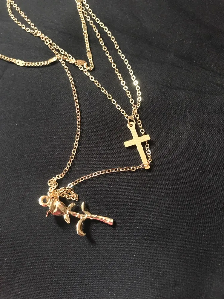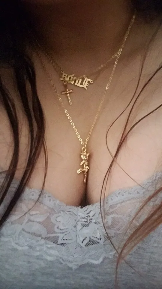 FREE SHIPPING Rose Necklace Vintage Gold Jewelry Gift JKP512