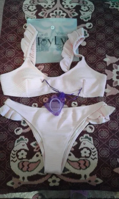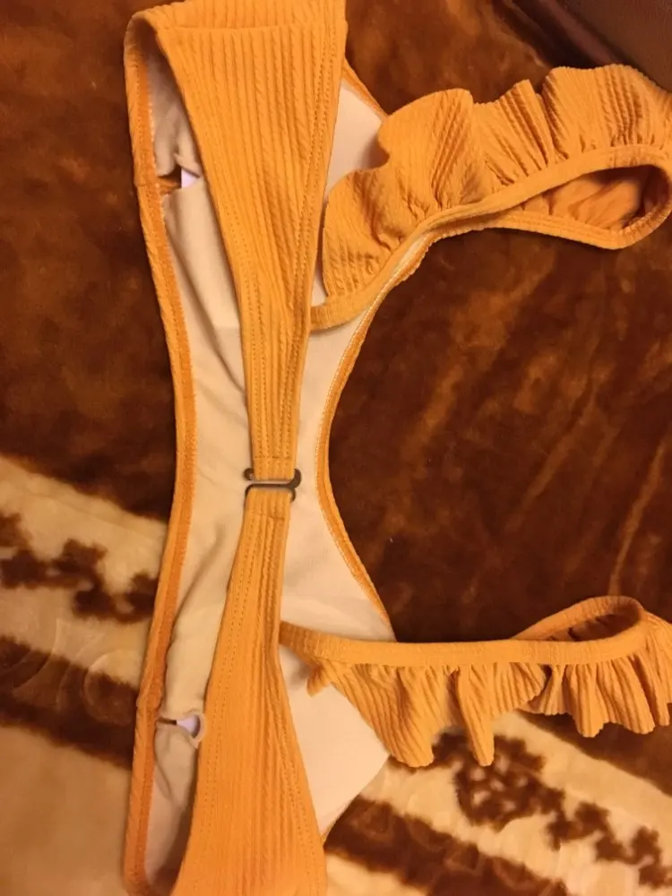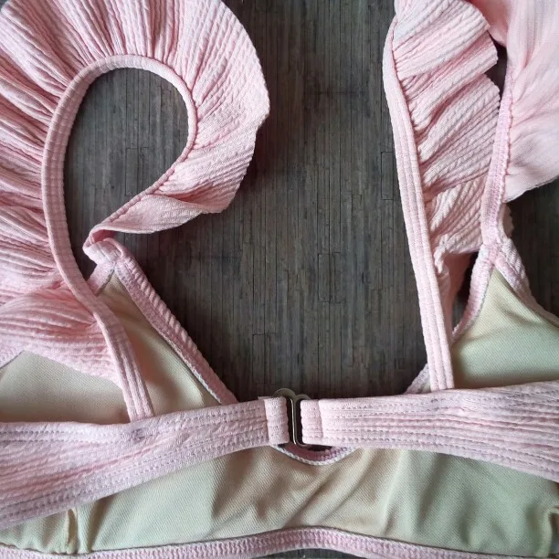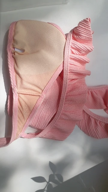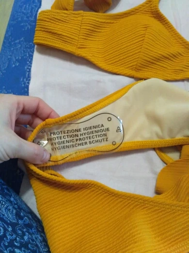 Купальник абсолютно такой, как на фото. Думаю, что даже мокрый он будет держать форму оборок. На плавках защитная наклейка. Застёжка металл, что лично для меня плюс. Продавец положил очаровательную цепочку в подарок. Доставка быстрая. К швам не придраться, все аккуратно. Поролоновые вставки достаются. Размер s на ог 83 и об 87 хорошо подошёл. м был бы велик точно. Немного туговат на опг 75, но не критично. Продавцу огромное спасибо!
