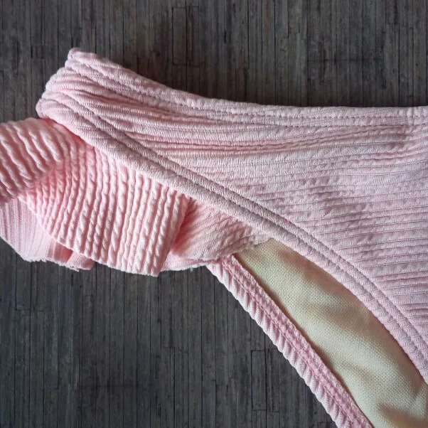 Stunning swimsuit! I love. It looks very cute :) thick material. All lines smooth, do not stick out. Delivered quickly. Recommend!