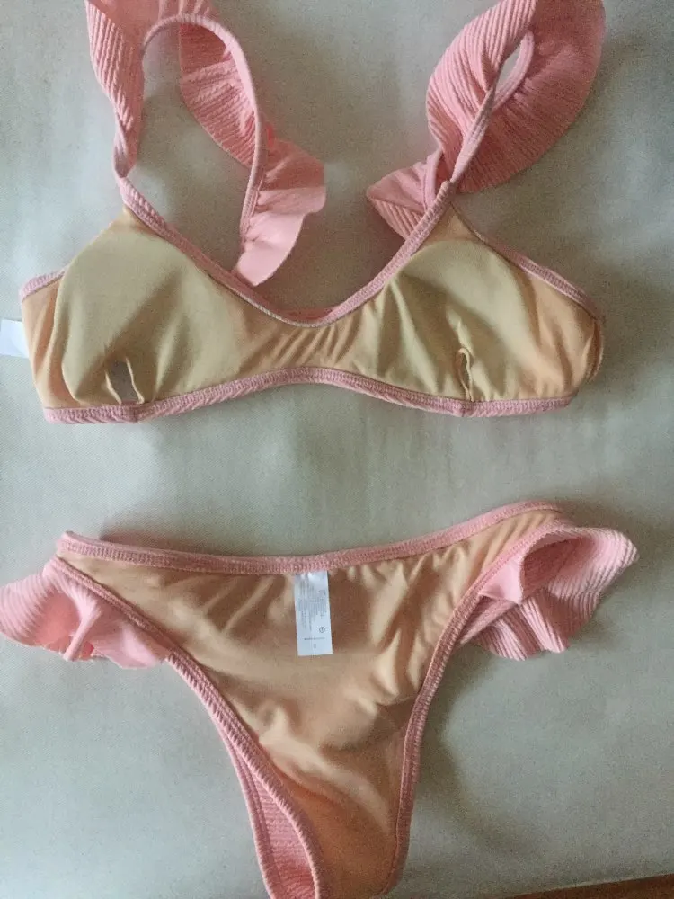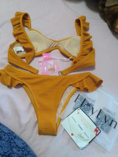 Купальник очень классный, но, к сожалению, немного великоват, надо было брать s... Спасибо продавцу за подарок, мне очень понравилось. Доставка относительно быстрая. К заказу рекомендую